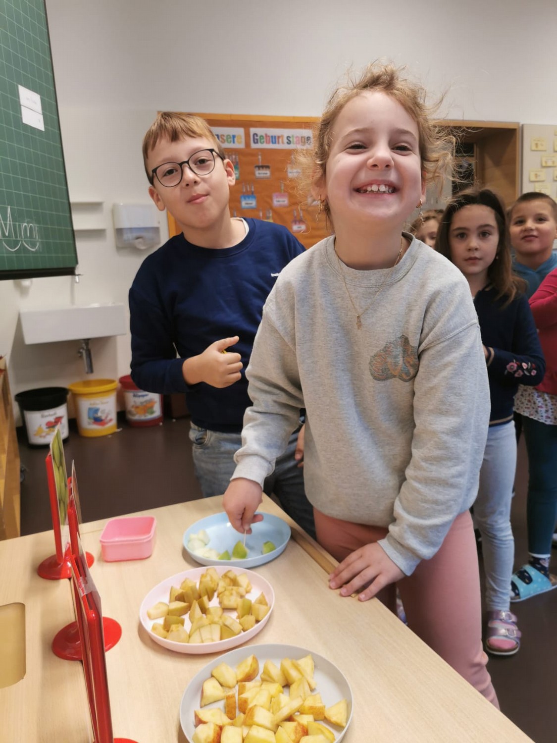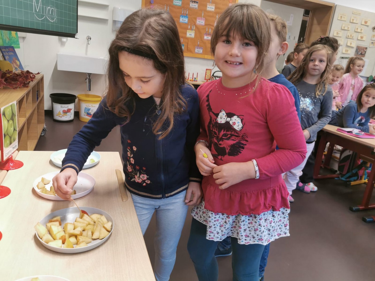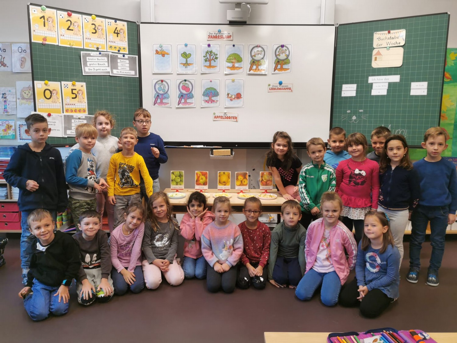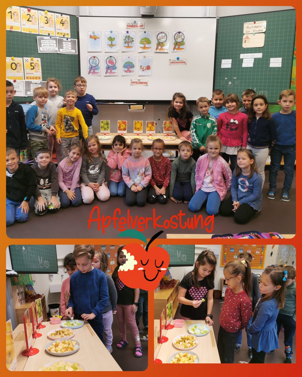 Die Kinder der 1.a Klasse verkosteten unterschiedliche Apfelsorten.