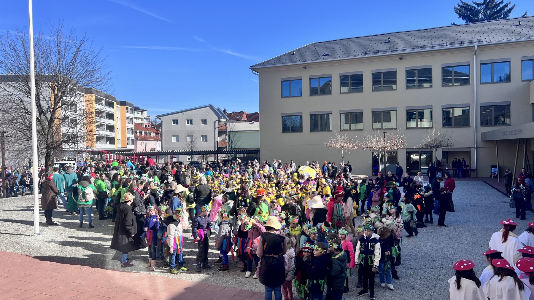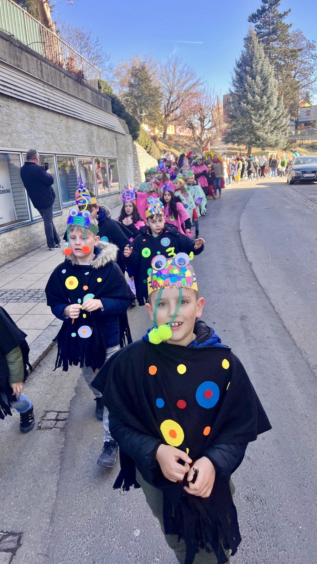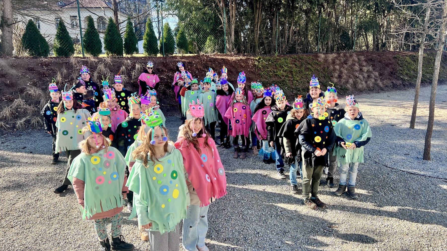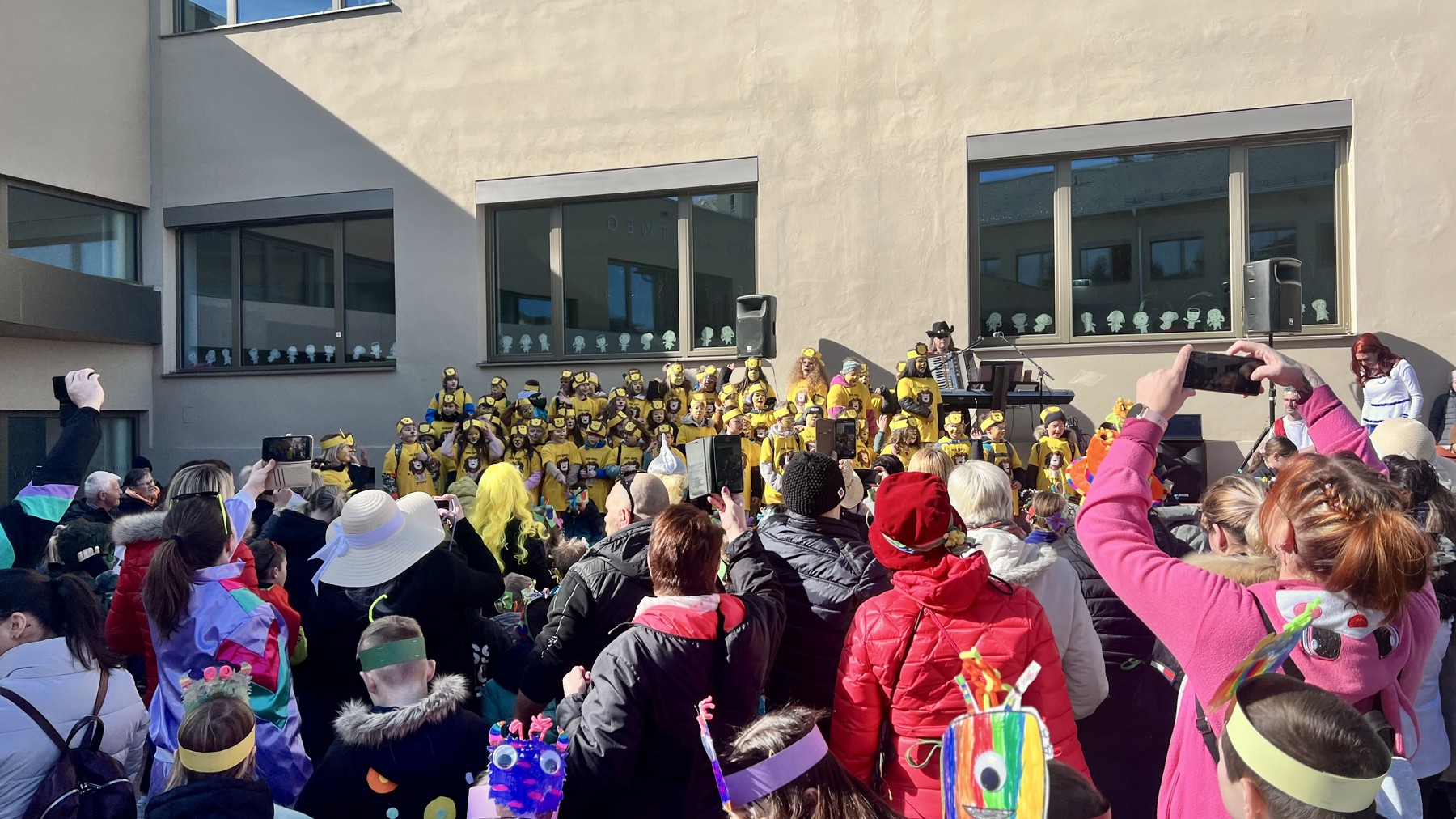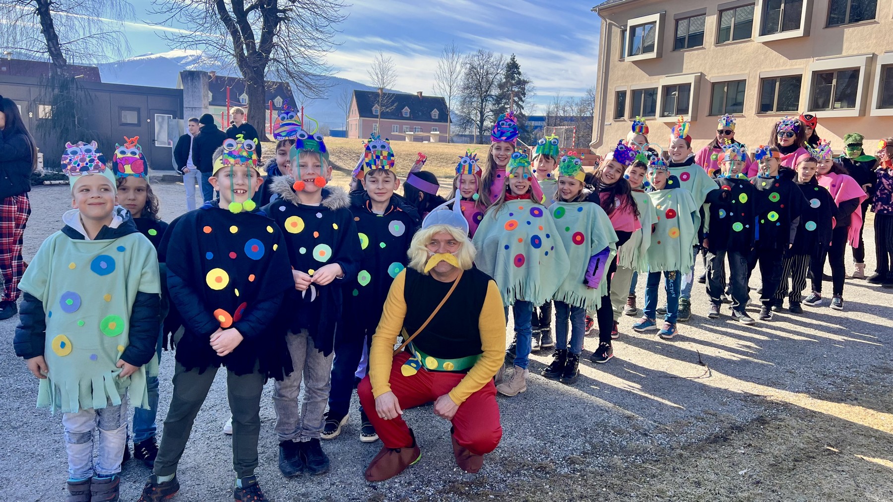 Am Faschingdienstag waren alle Klassen mit Begeisterung beim Faschingsumzug dabei. Zuvor konnte sich jeder mit einem Krapfen vom Elternverein stärken. Danke vielmals.