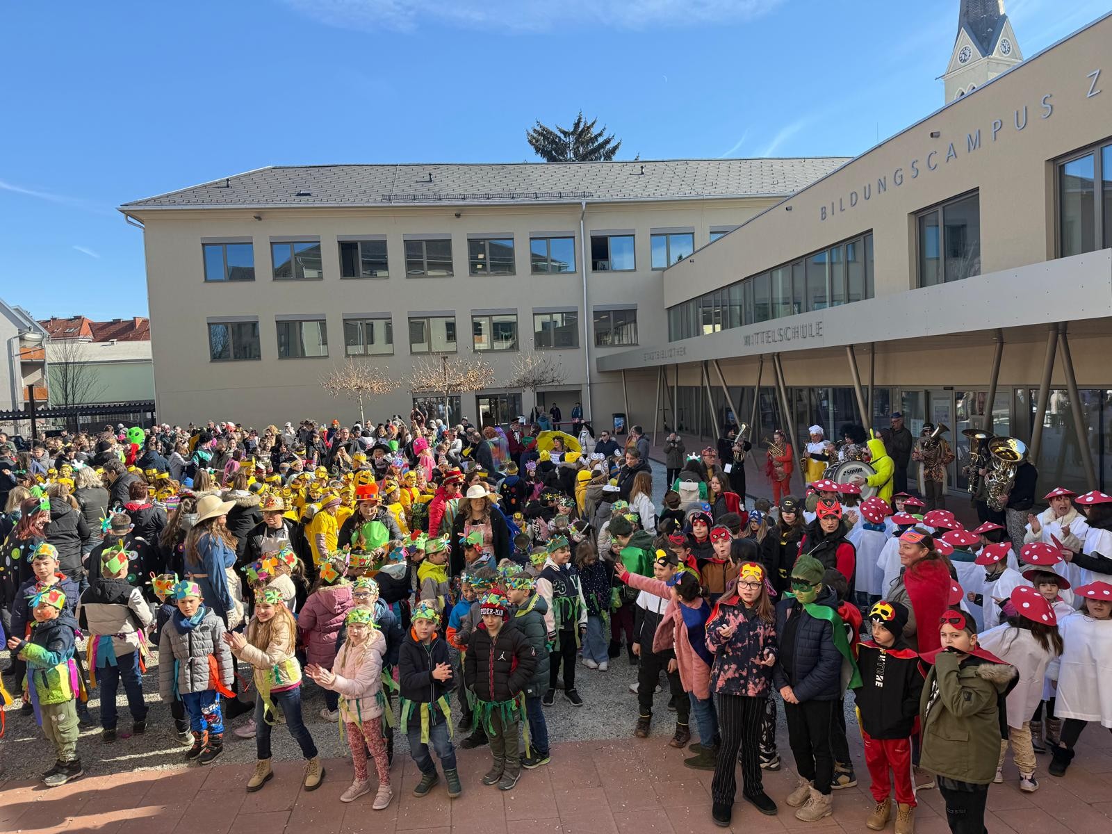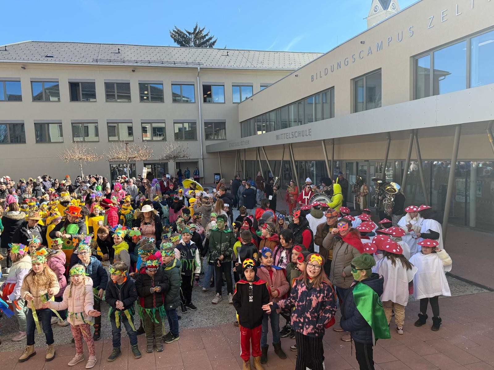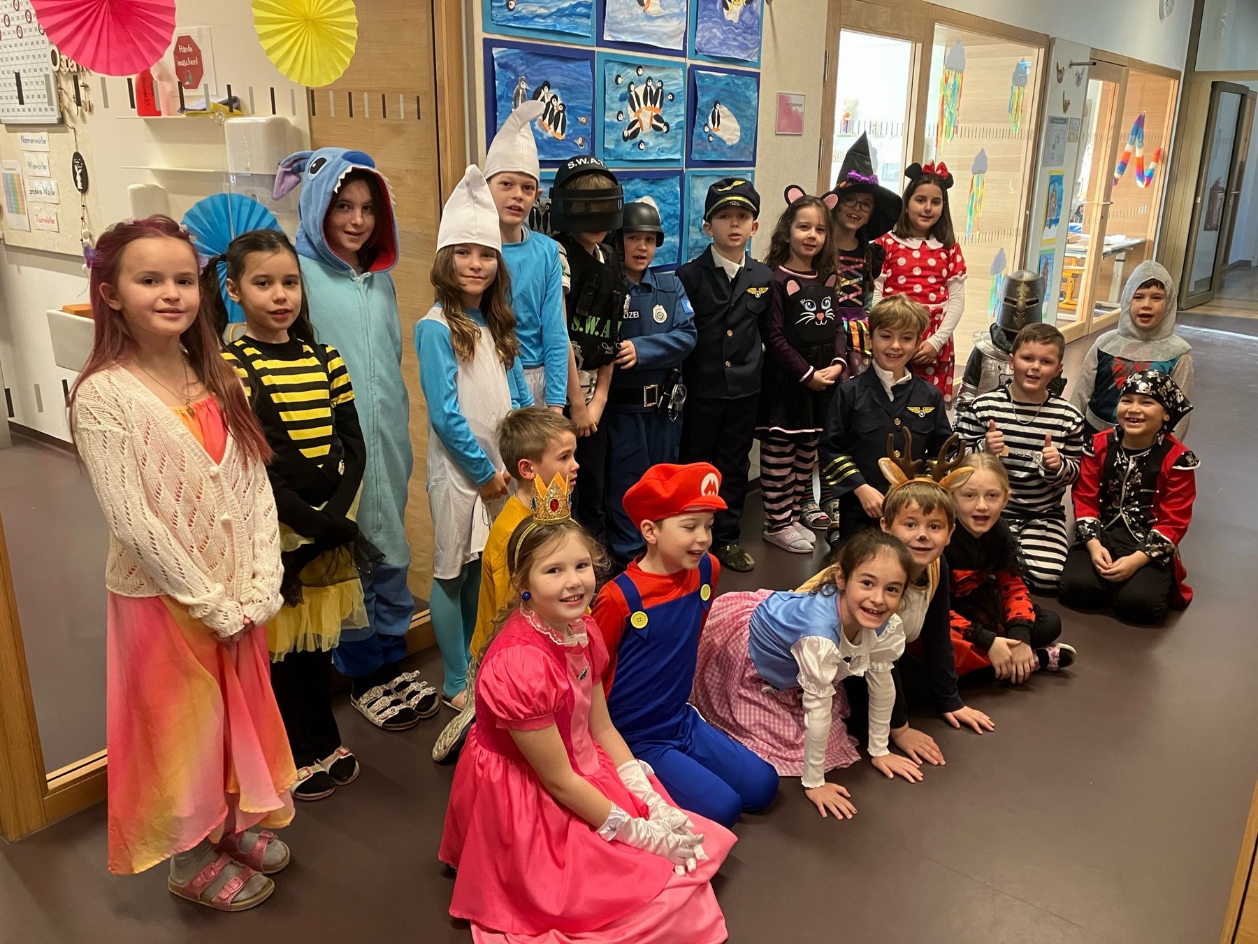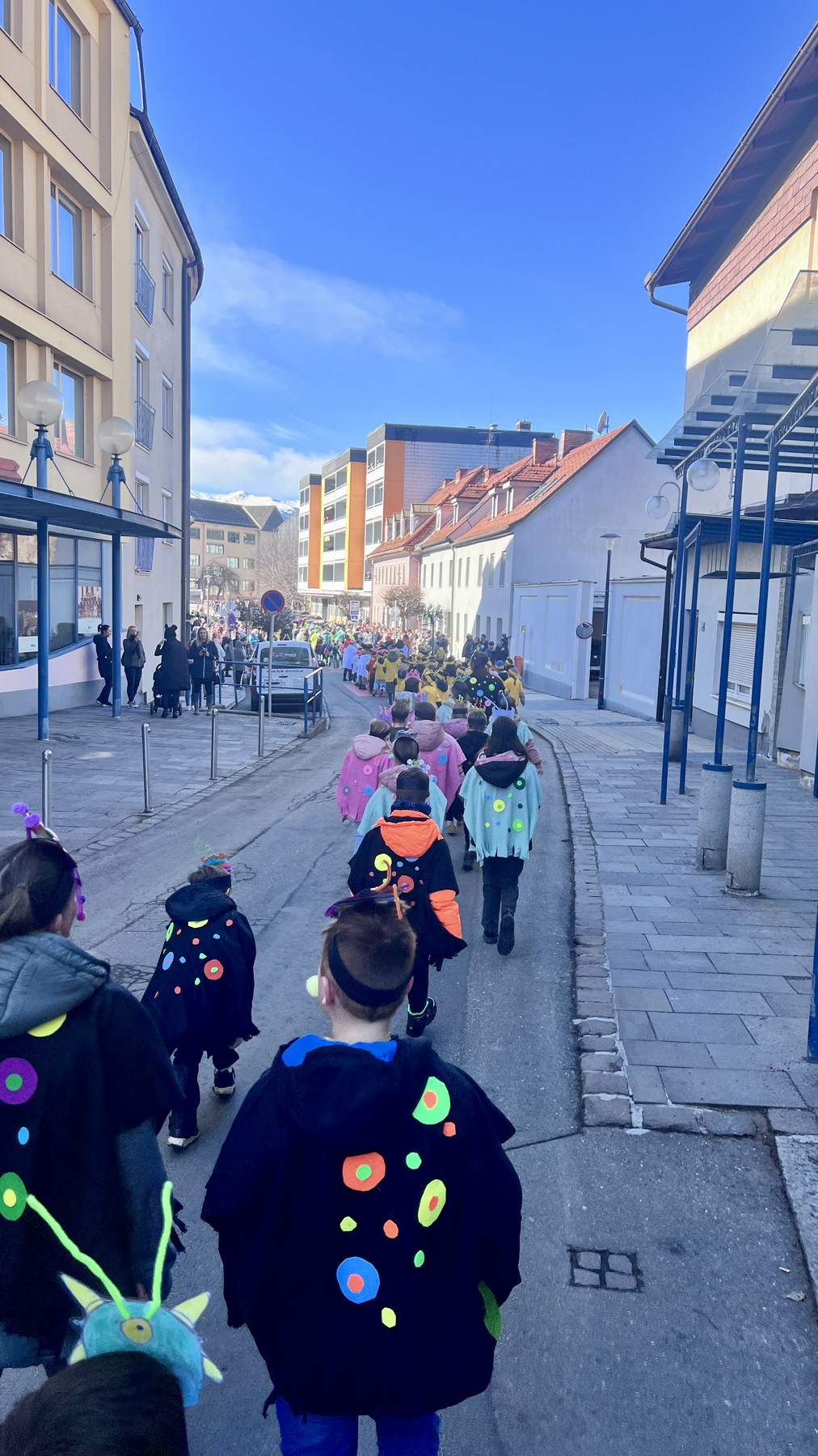 Am Faschingdienstag waren alle Klassen mit Begeisterung beim Faschingsumzug dabei. Zuvor konnte sich jeder mit einem Krapfen vom Elternverein stärken. Danke vielmals.