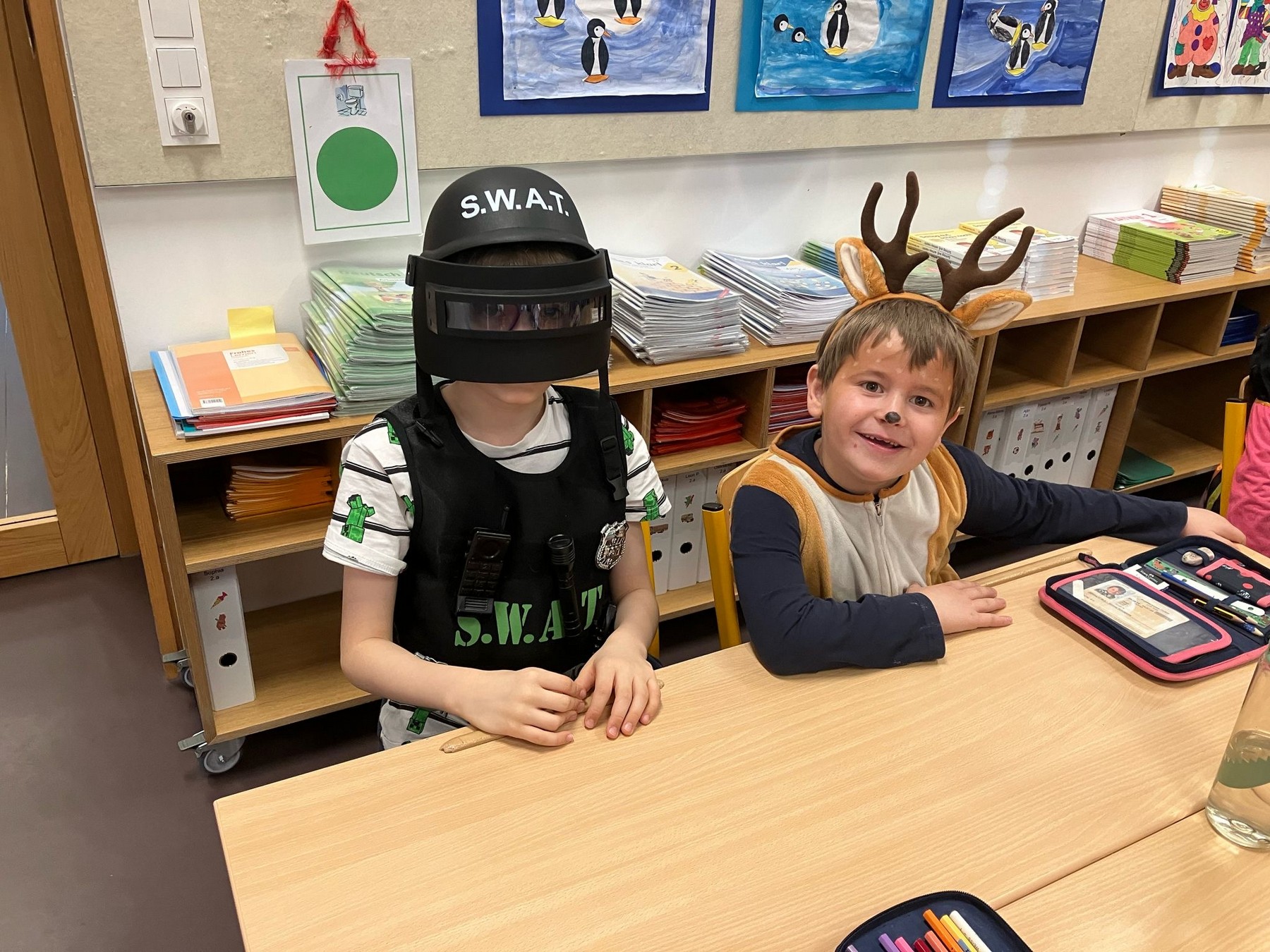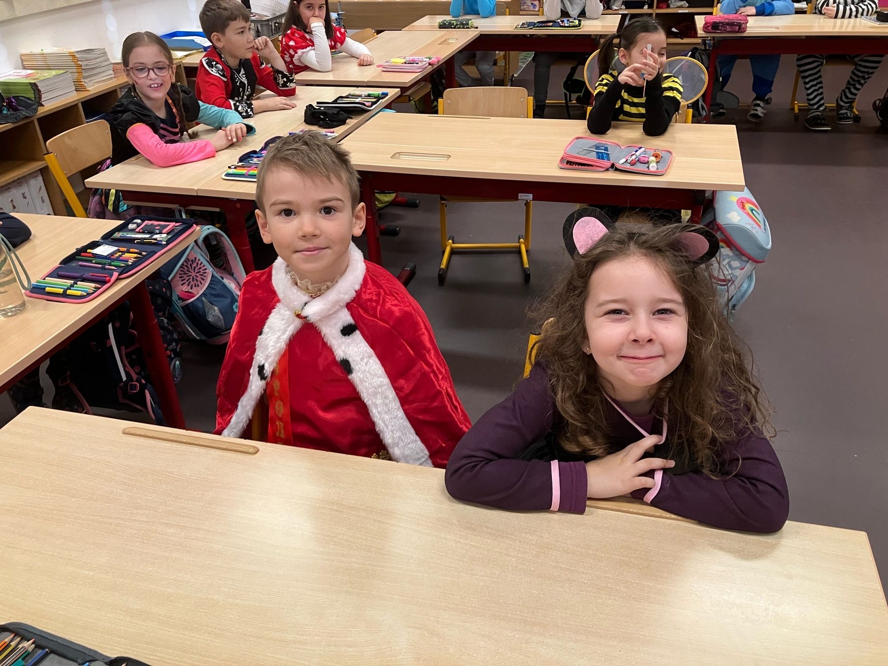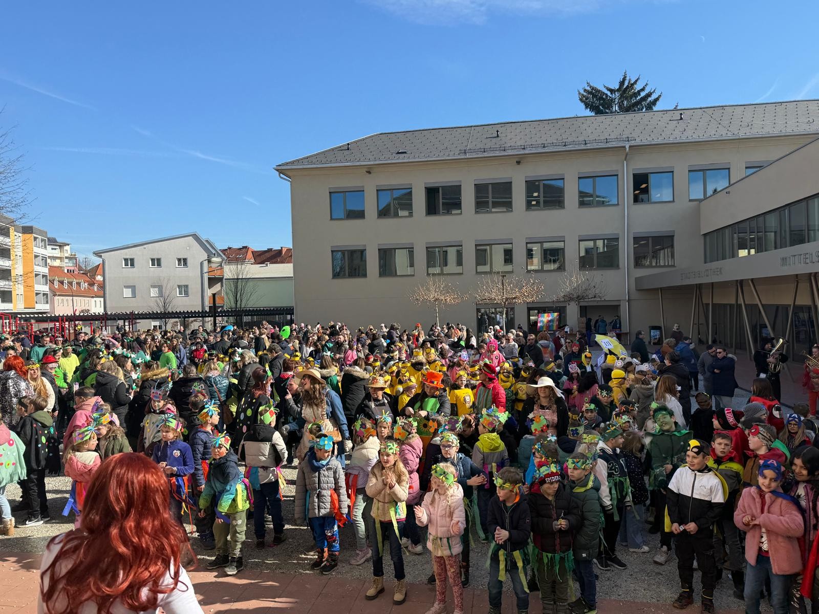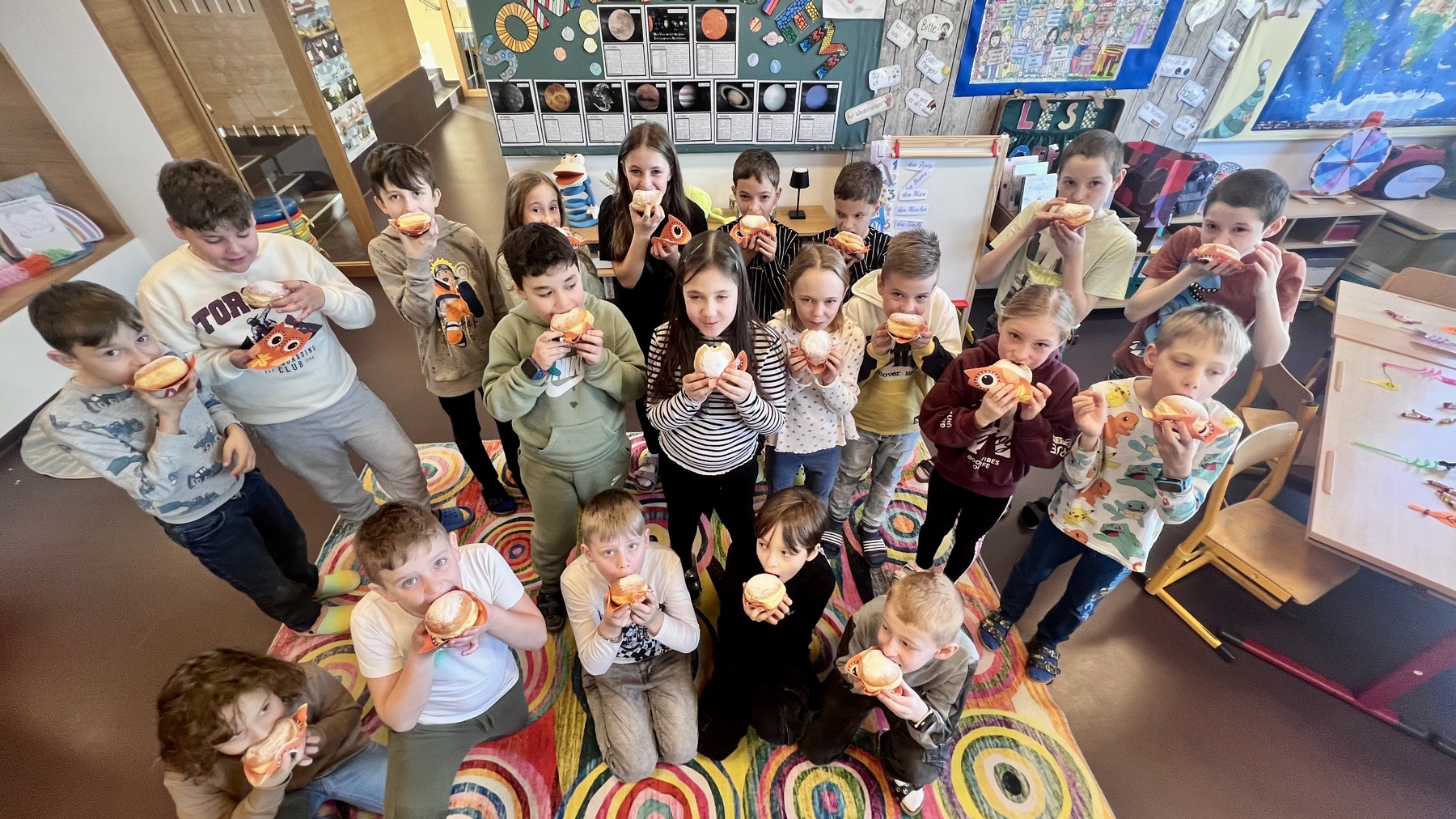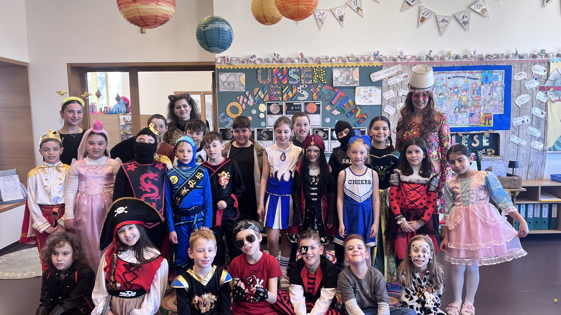 Am Faschingdienstag waren alle Klassen mit Begeisterung beim Faschingsumzug dabei. Zuvor konnte sich jeder mit einem Krapfen vom Elternverein stärken. Danke vielmals.