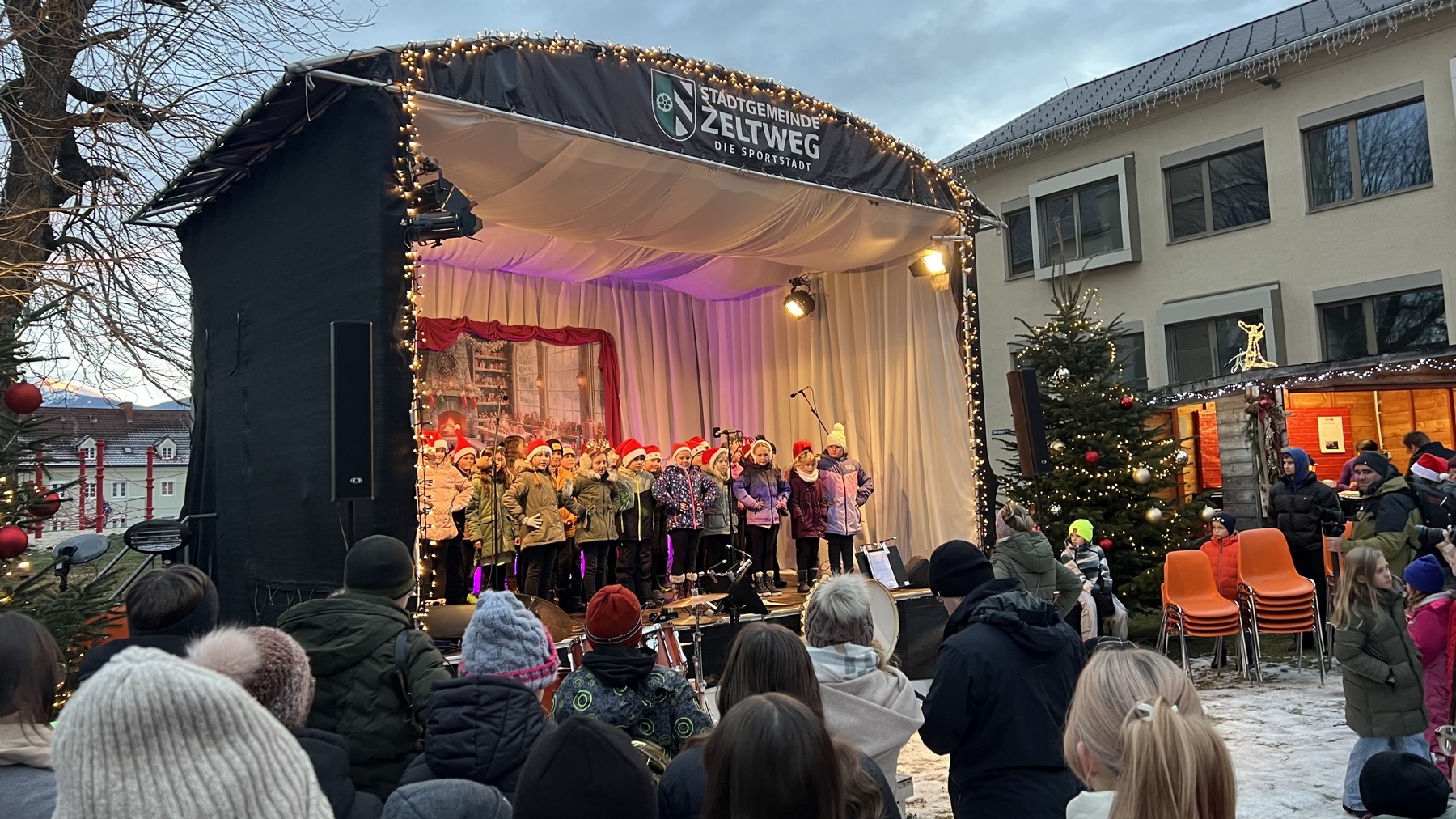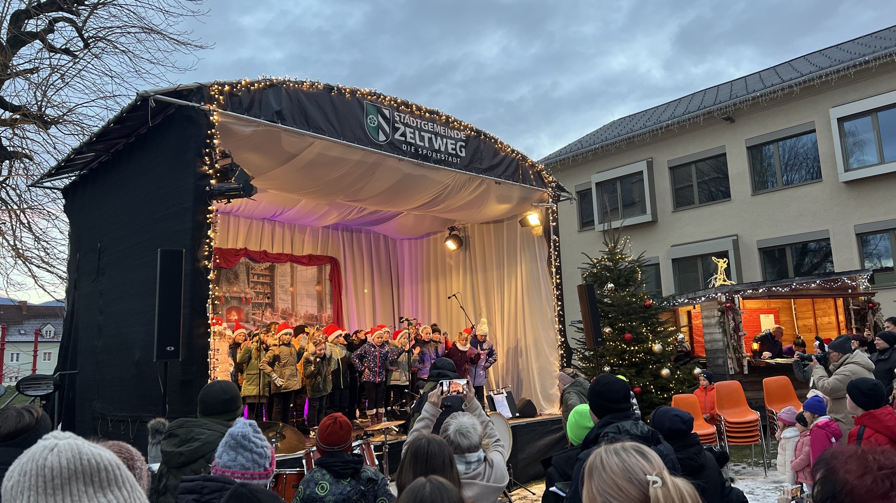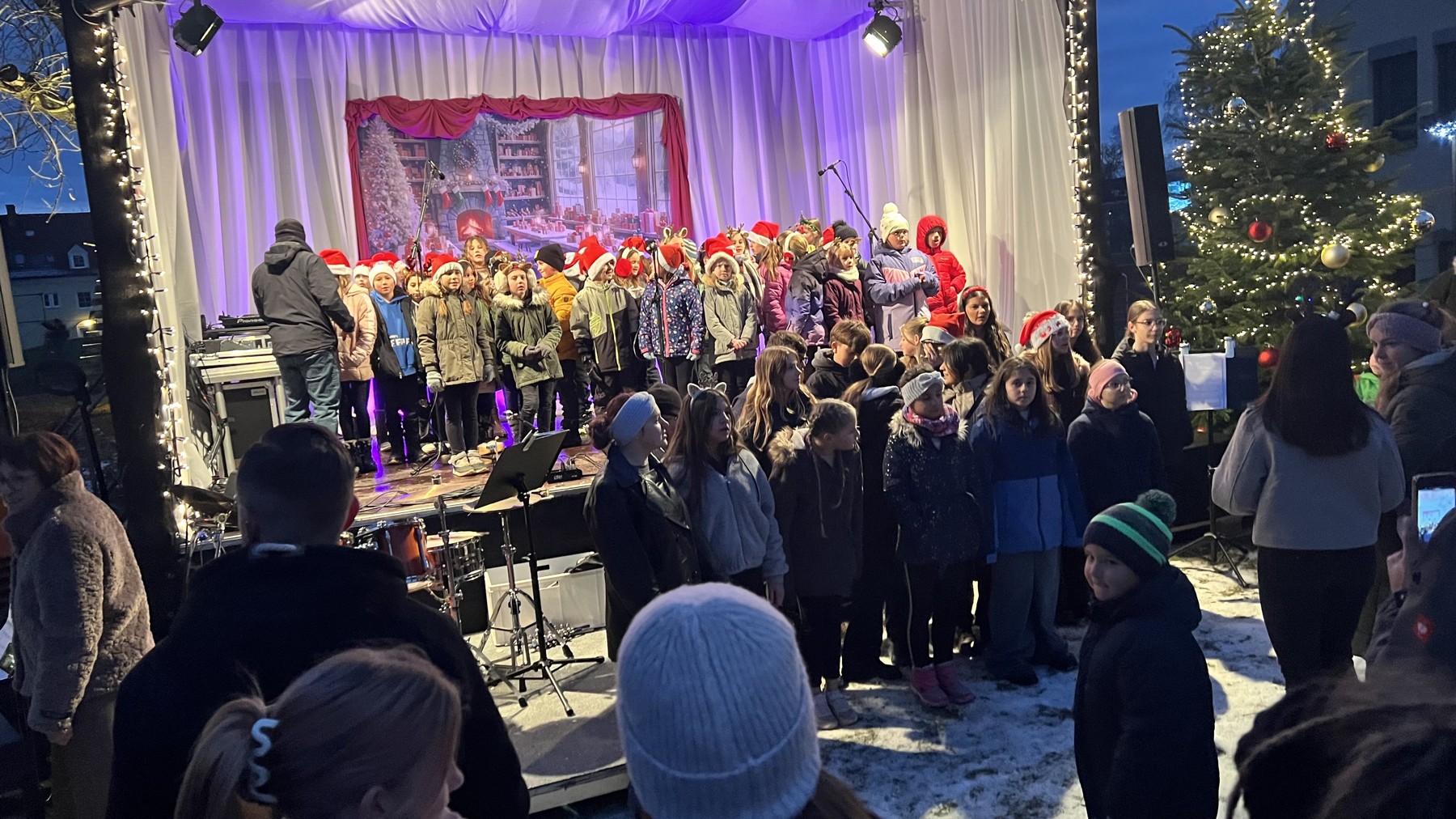 Der Chor der Volks- und Mittelschule eröffnete feierlich das Adventdorf.