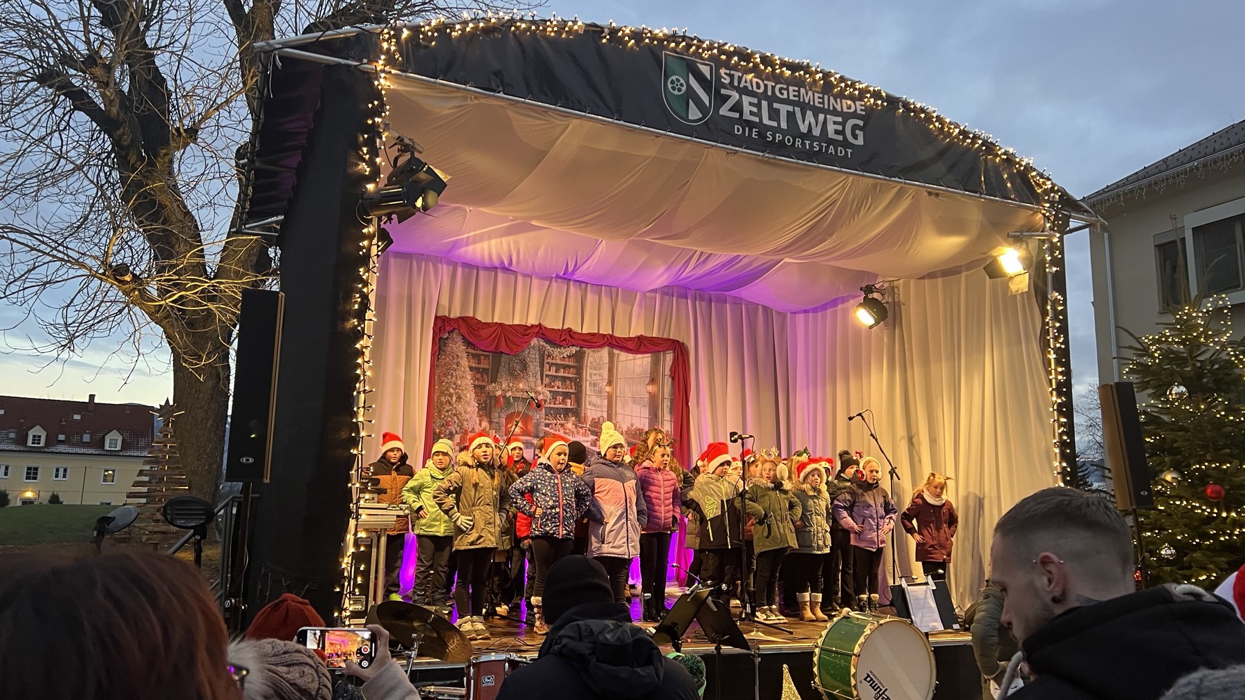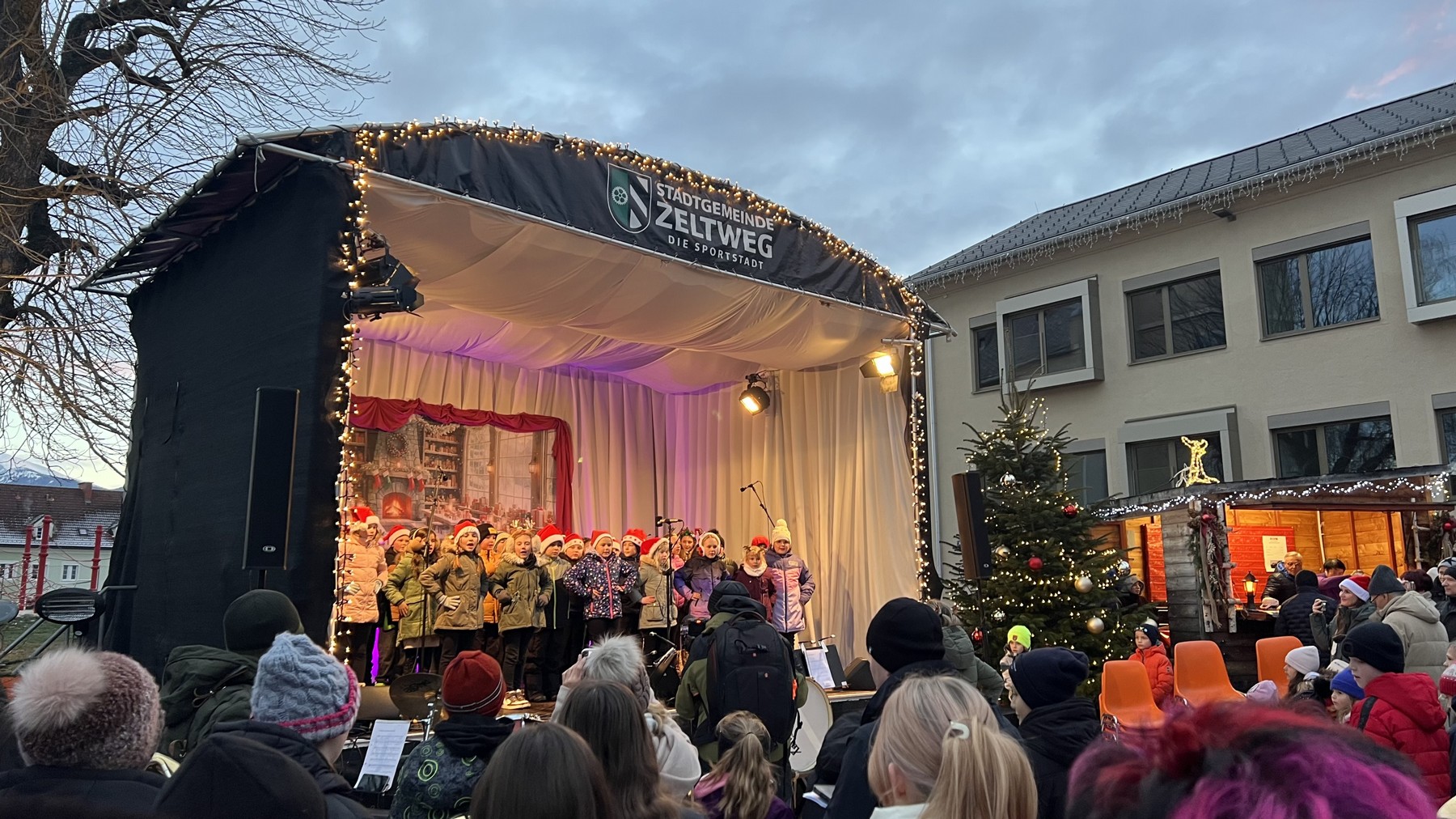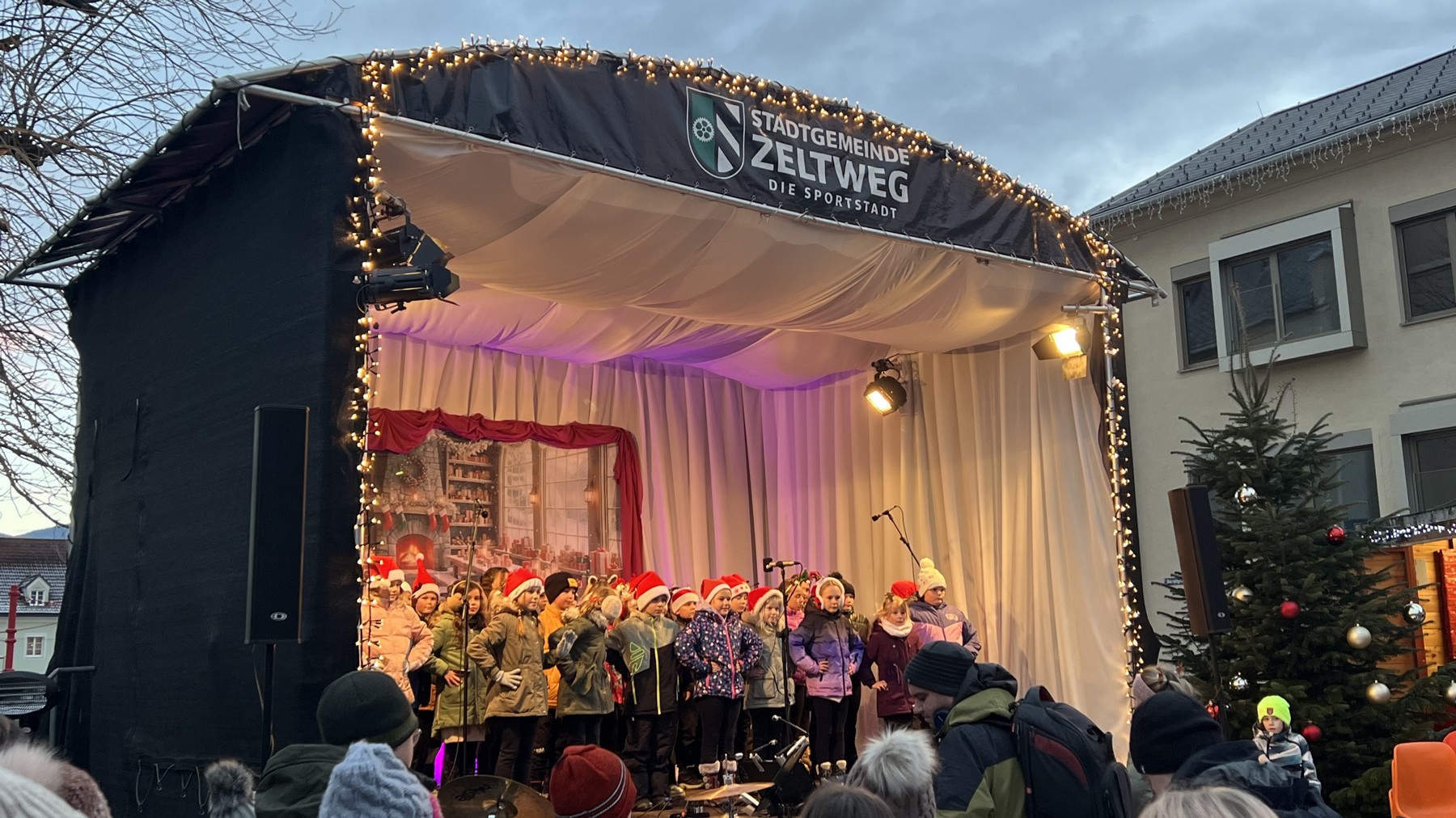 Der Chor der Volks- und Mittelschule eröffnete feierlich das Adventdorf.