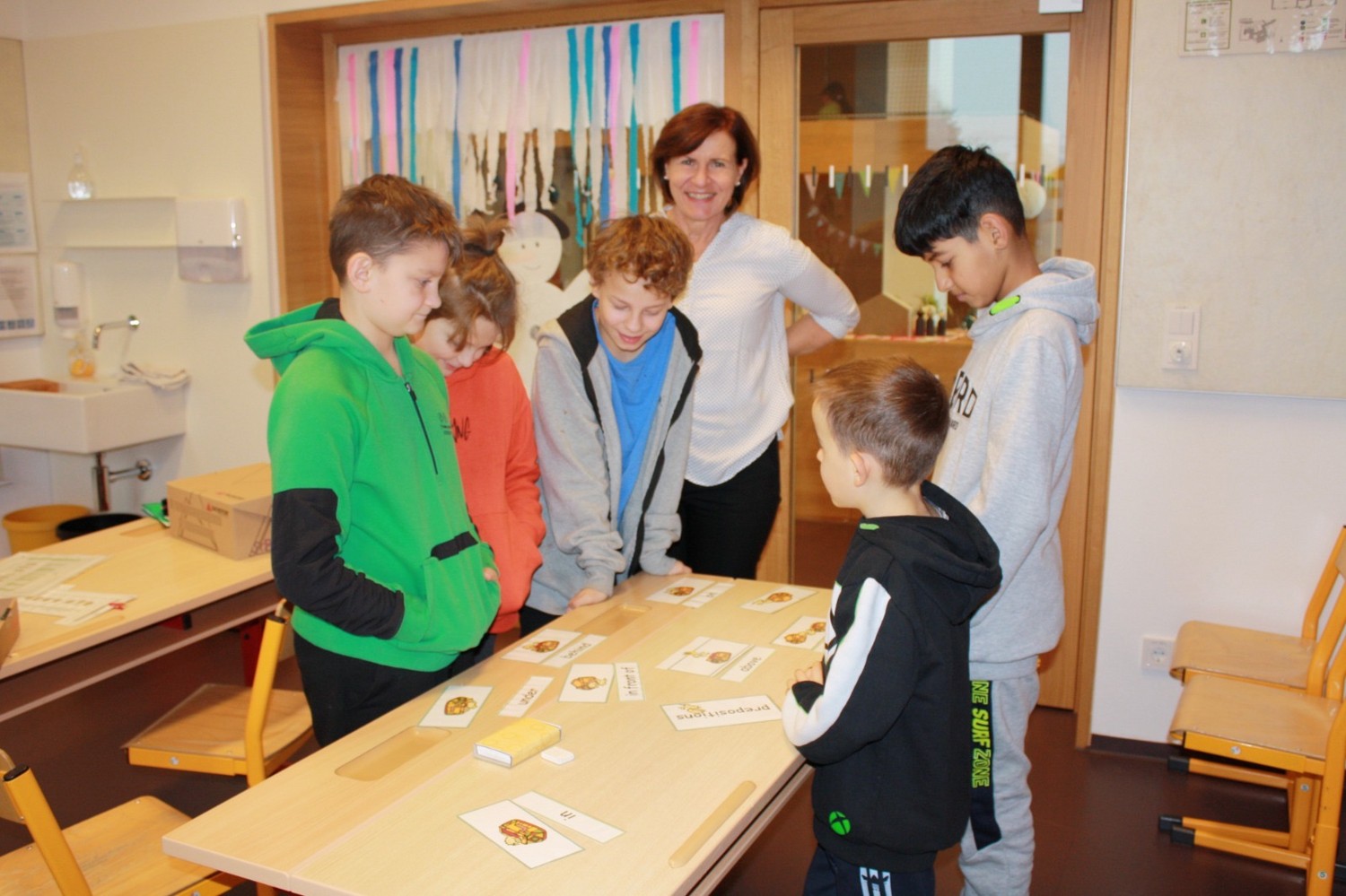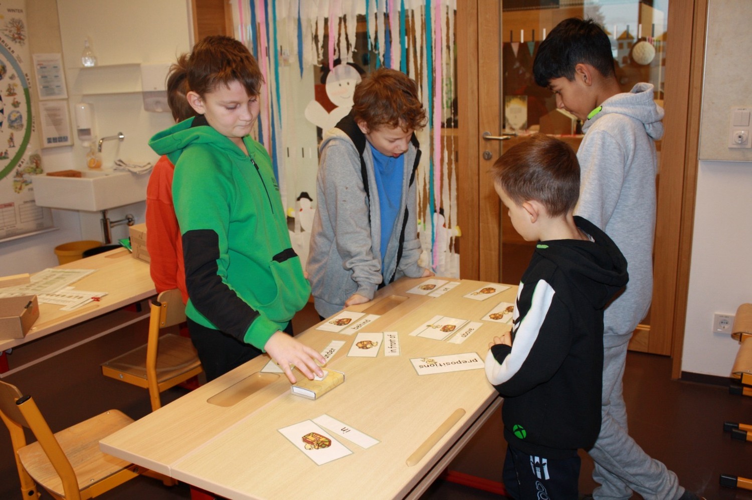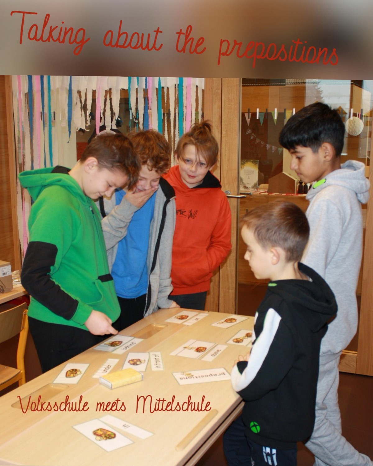 Am 12.12.23 bekamen unsere Volksschüler:innen Besuch aus der Mittelschule. Spielerisch zeigten "die Großen", wie man Präpositionen in Englisch anwendet.