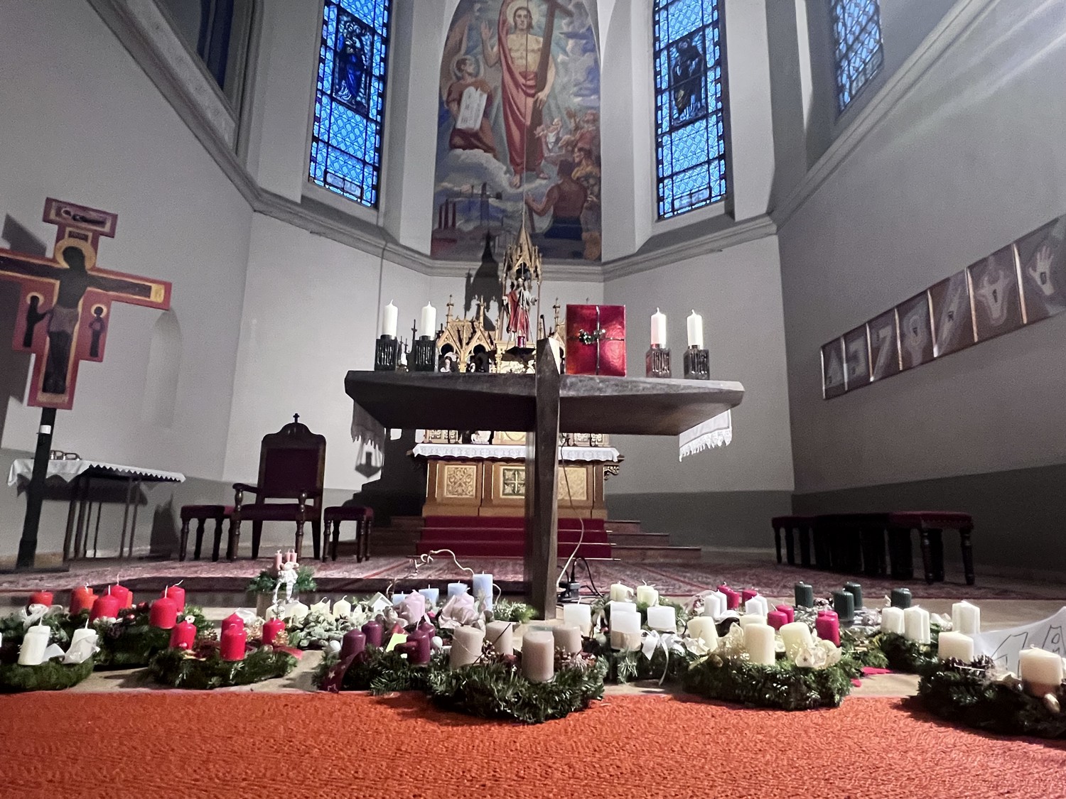 Am Freitag, den 1.12.23 wurden die Adventkränze aller Klassen der Volks- und Mittelschule gesegnet.