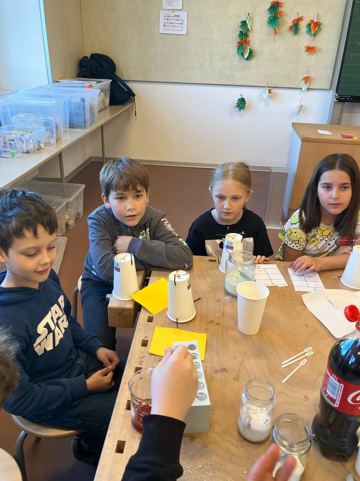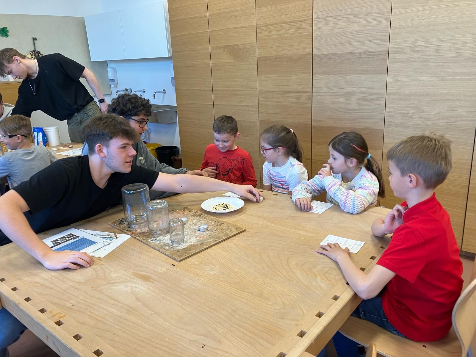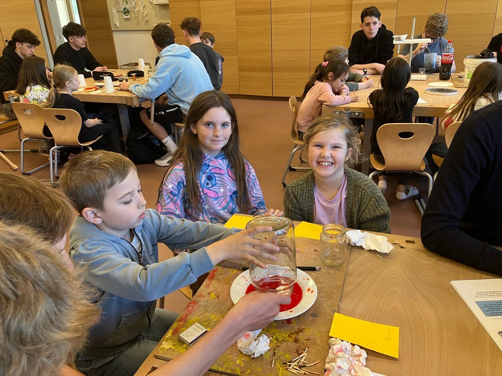 Die Kinder der 2. Klassen waren vom Besuch der HTL Zeltweg begeistert. Gemeinsam führten sie verschiedene Experimente durch.