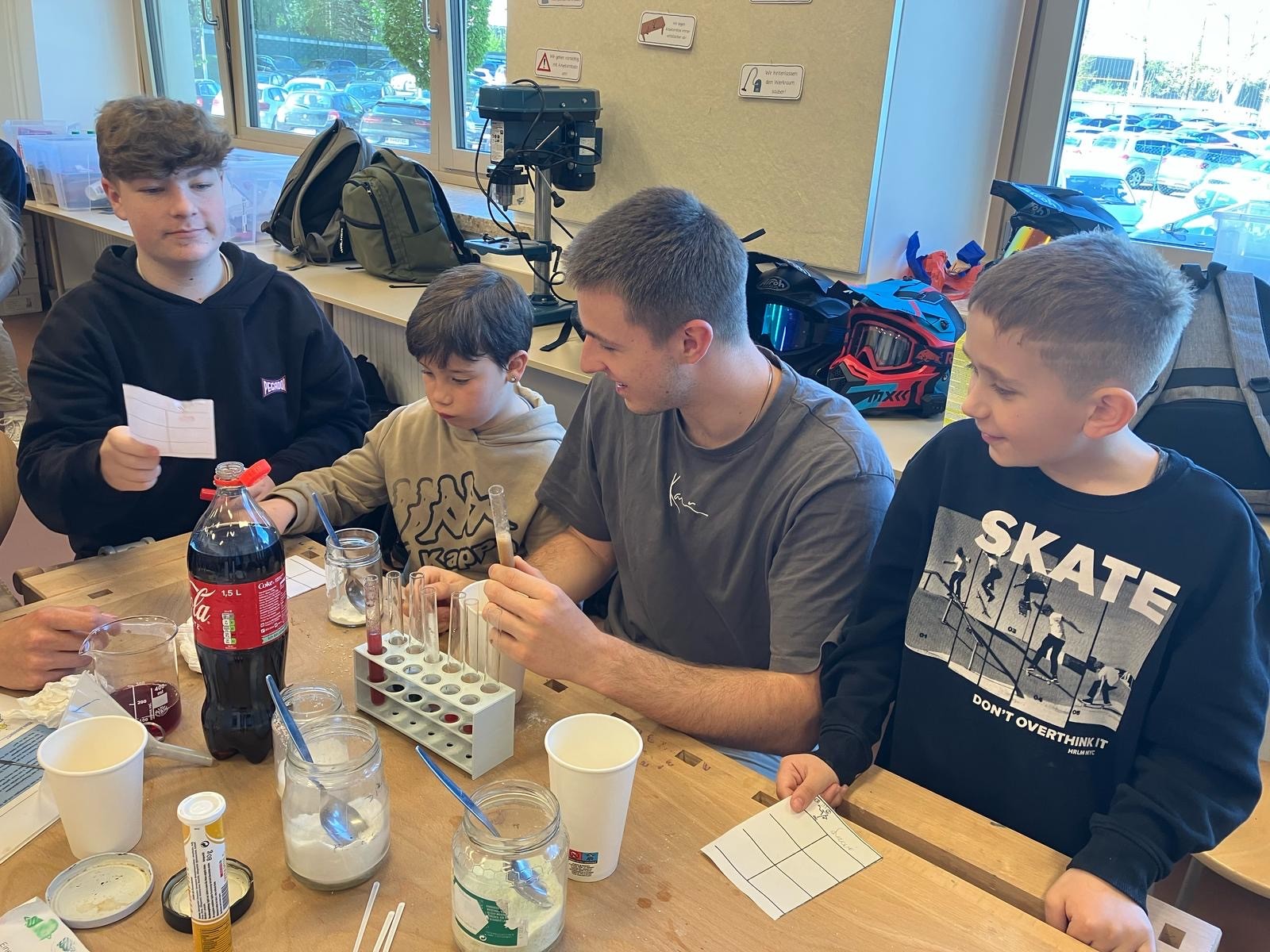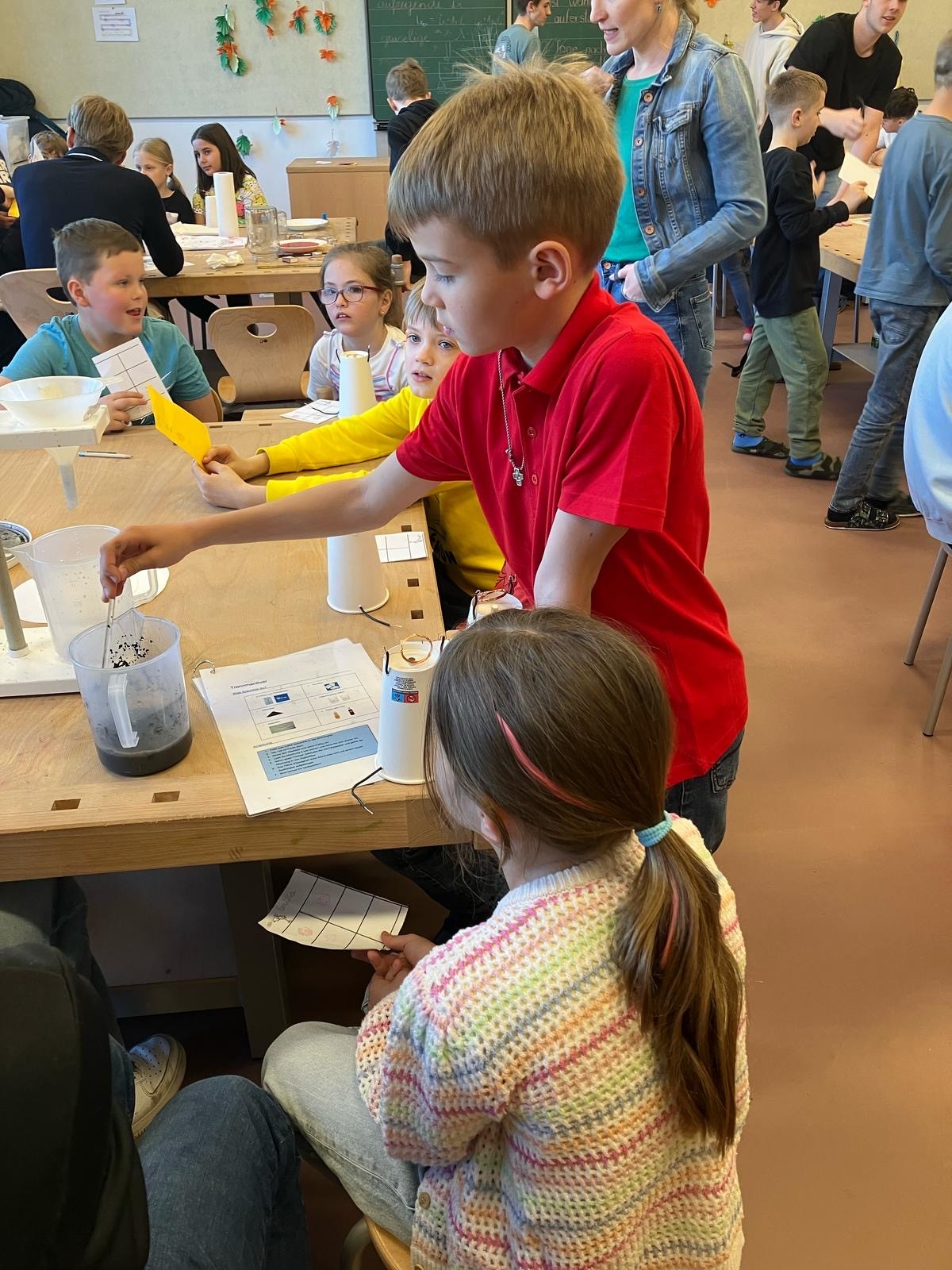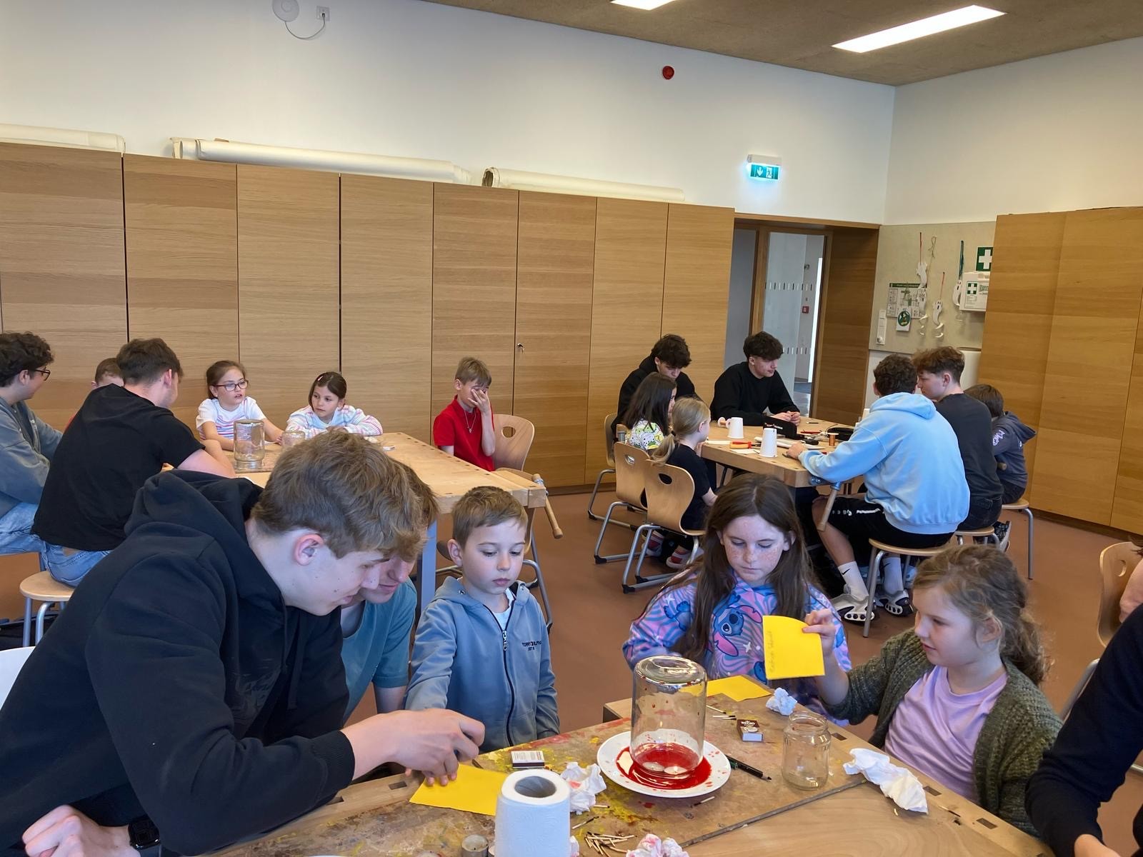 Die Kinder der 2. Klassen waren vom Besuch der HTL Zeltweg begeistert. Gemeinsam führten sie verschiedene Experimente durch.