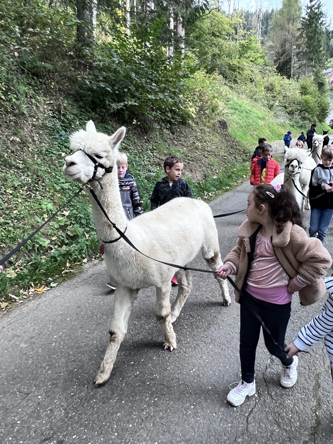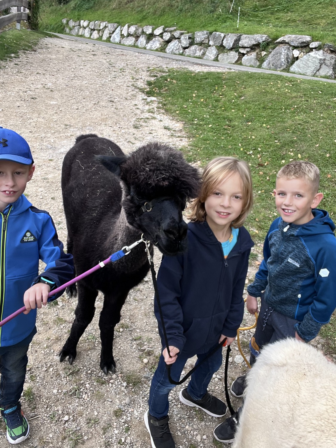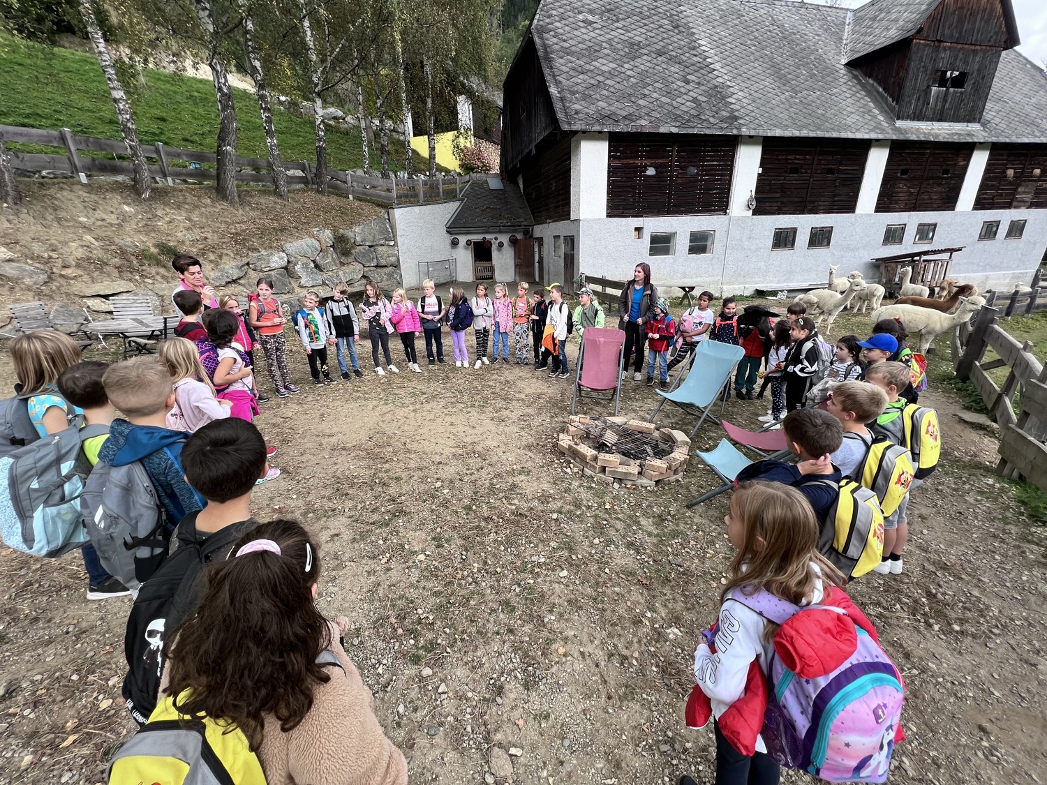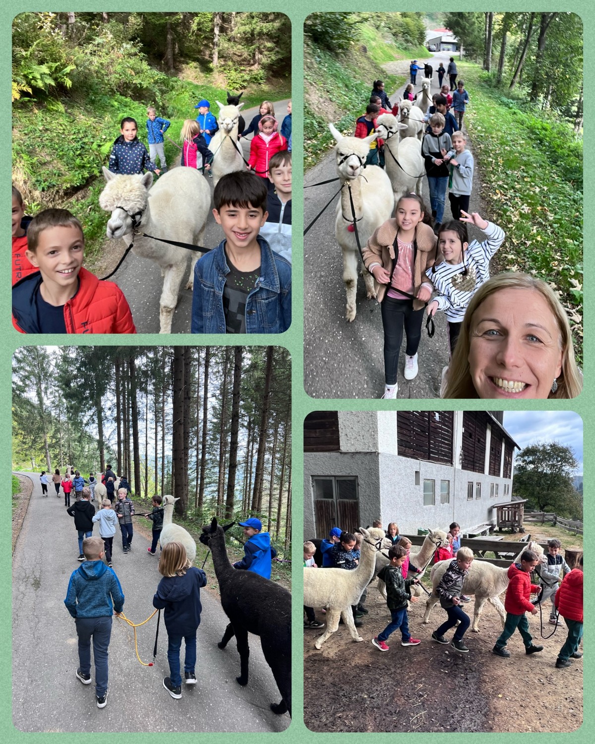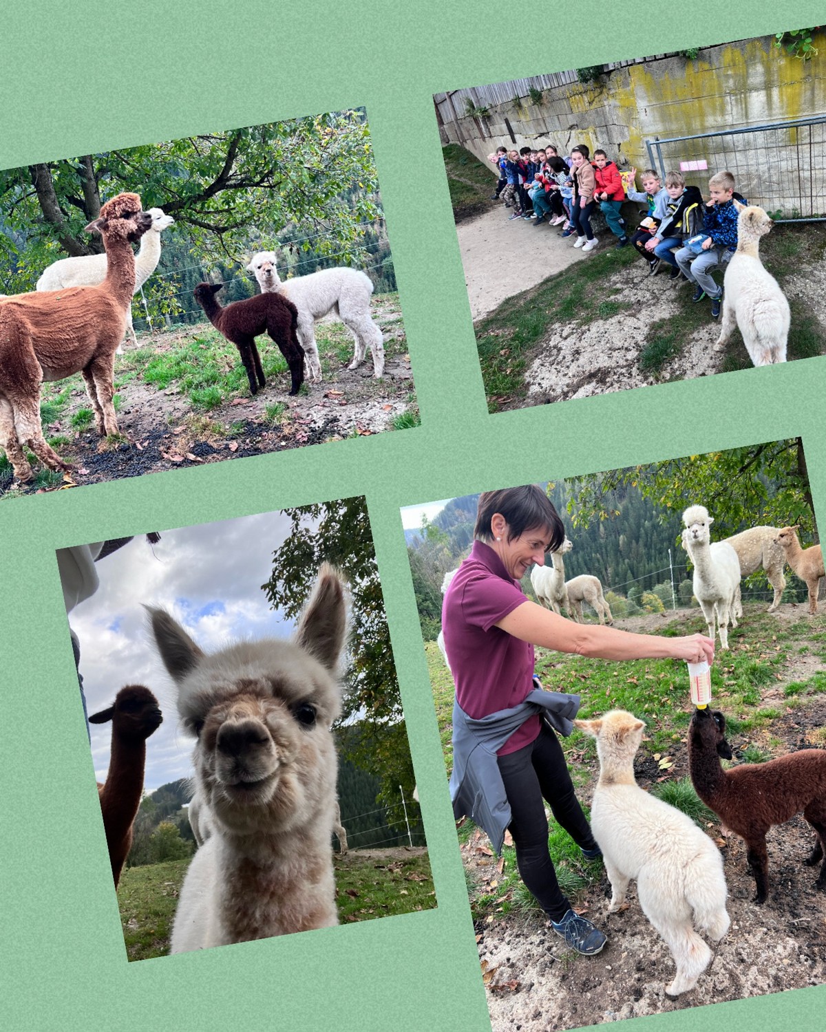 Die 2. Klassen besuchten die Alpakas am Wieserhof und durften viele neue Erlebnisse sammeln. Erst wurden die Alpakas gefüttert, danach für einen Spaziergang "aufgezäumt", spazieren geführt, gemeinsam gejausnet und zum Abschluss im Heu gehüpft und mit der Wolle der Alpakas Blüten gefilzt.