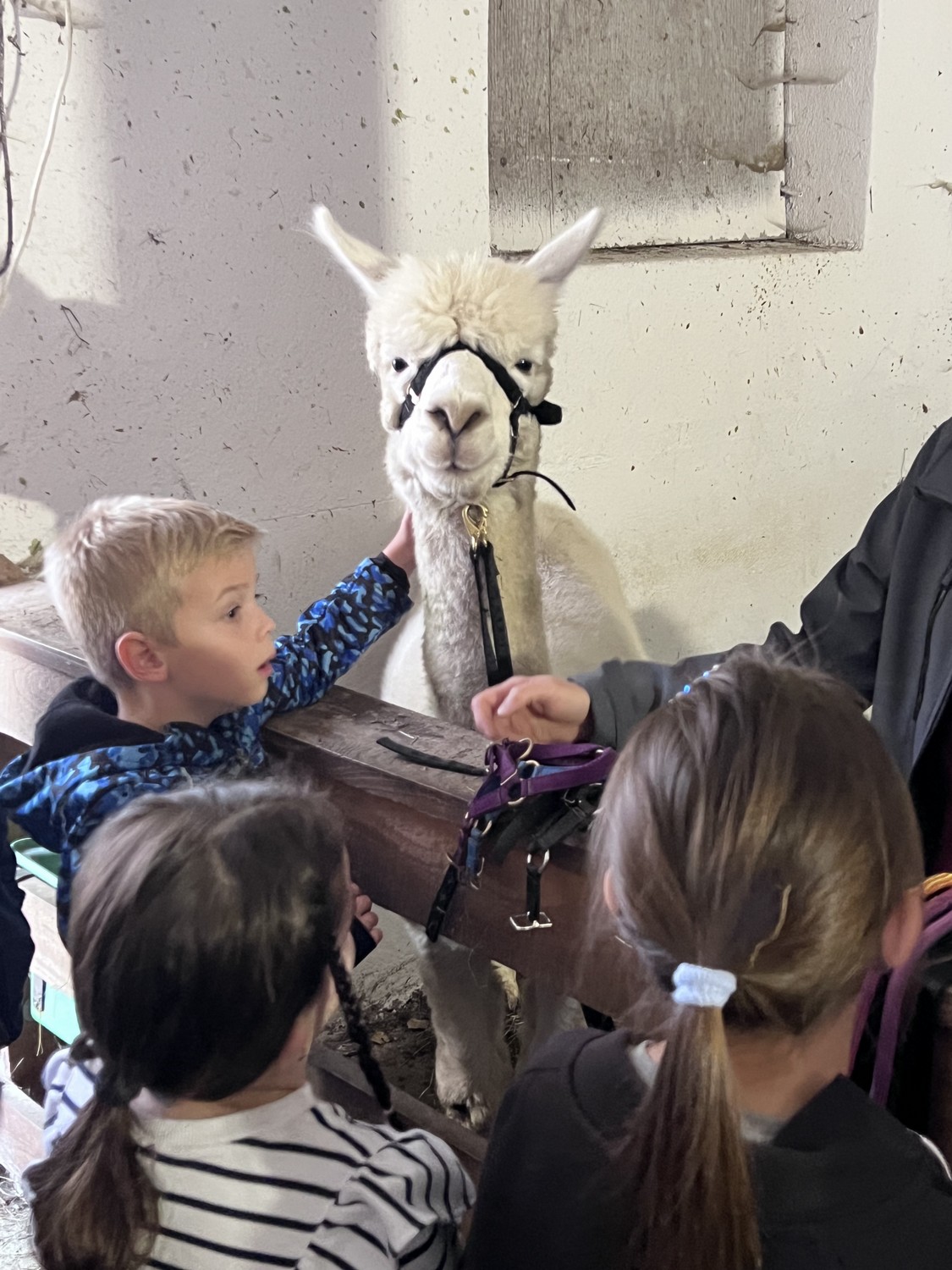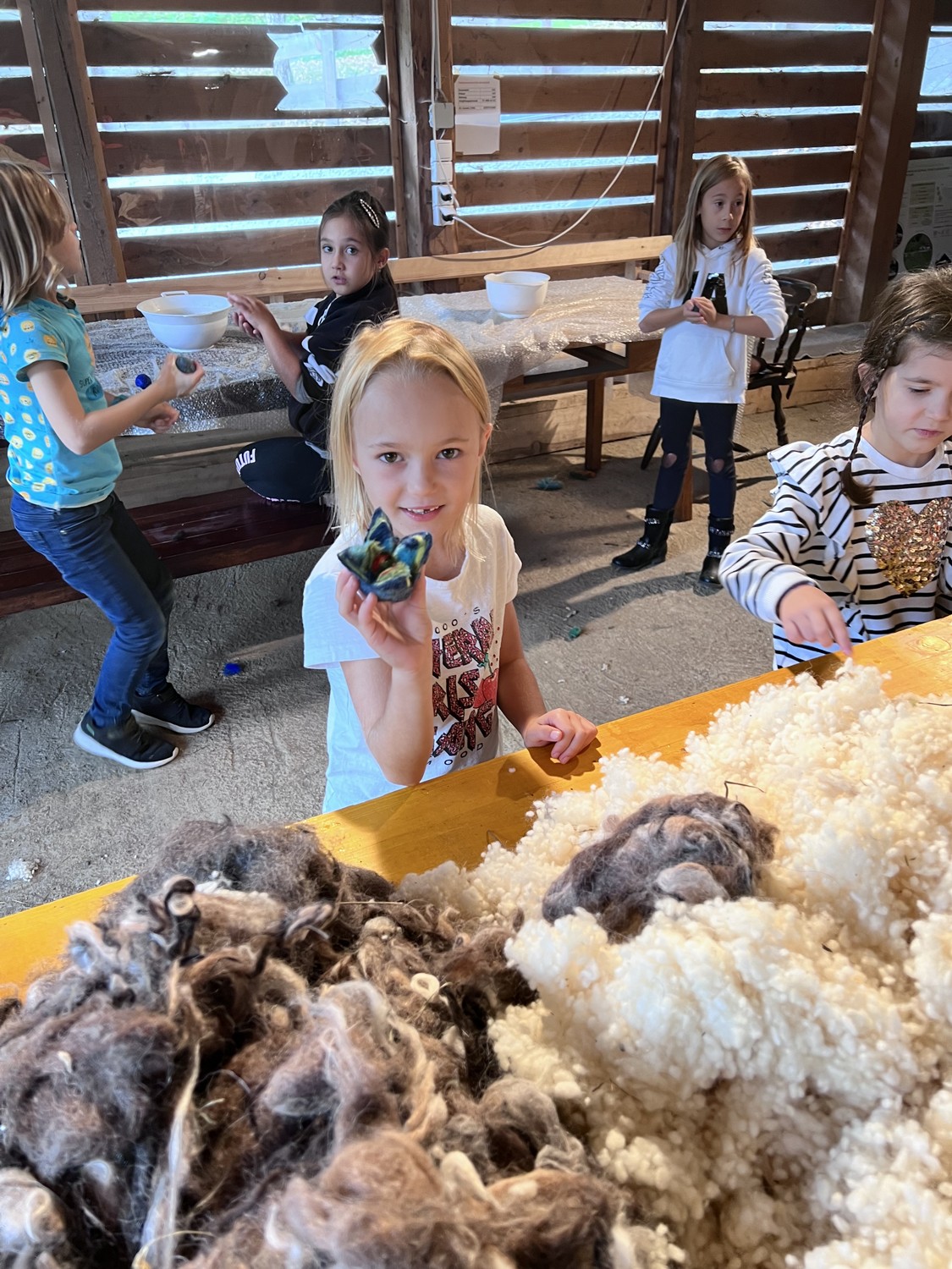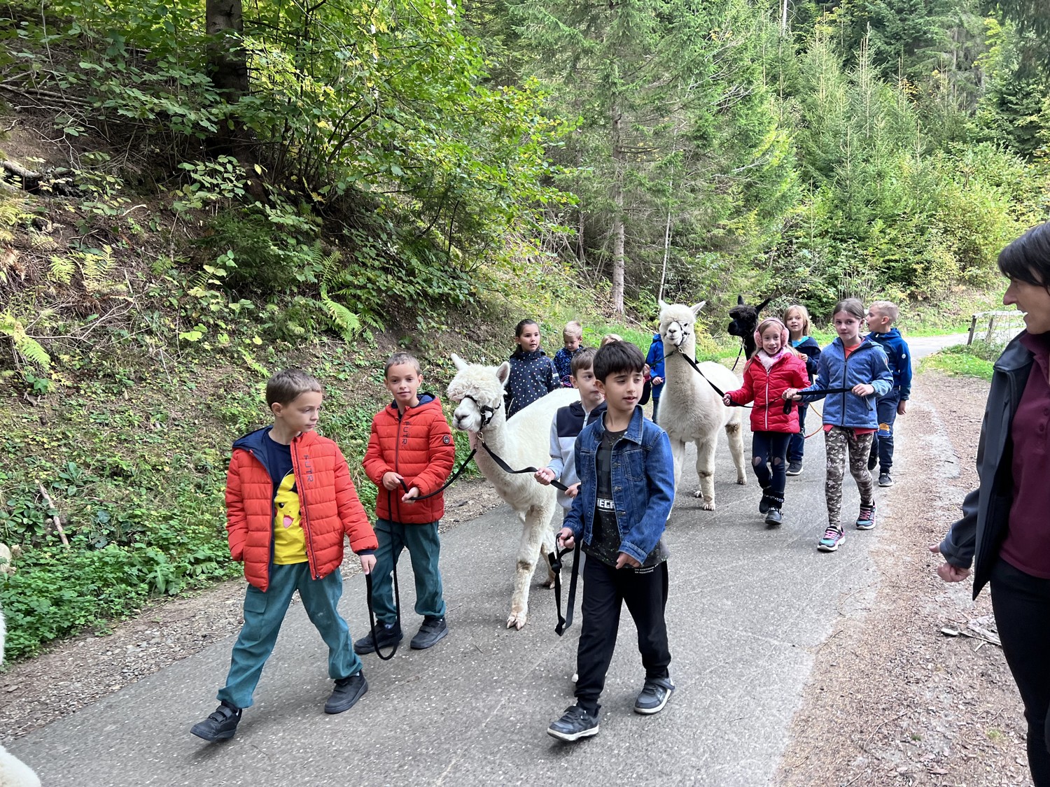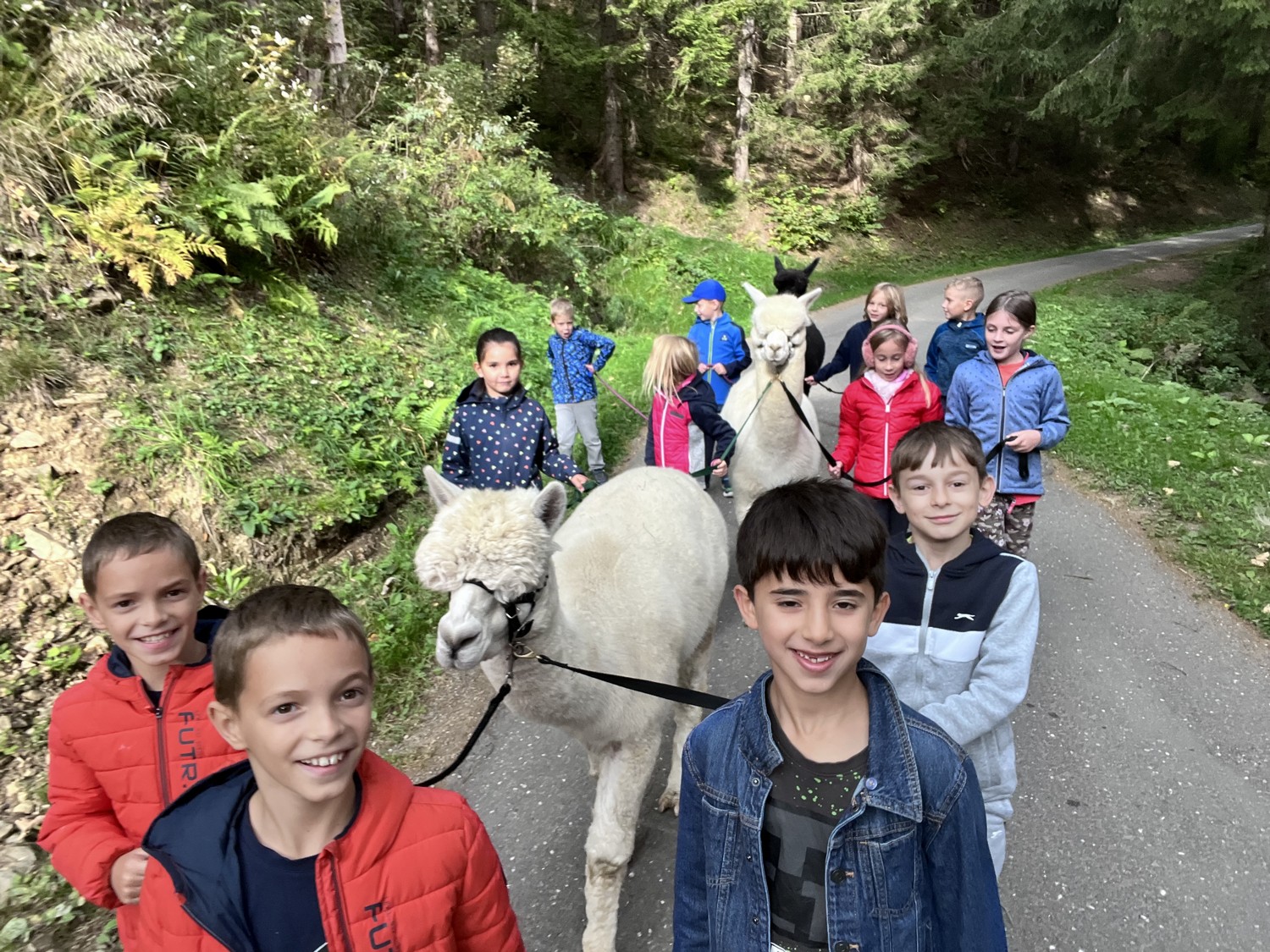 Die 2. Klassen besuchten die Alpakas am Wieserhof und durften viele neue Erlebnisse sammeln. Erst wurden die Alpakas gefüttert, danach für einen Spaziergang "aufgezäumt", spazieren geführt, gemeinsam gejausnet und zum Abschluss im Heu gehüpft und mit der Wolle der Alpakas Blüten gefilzt.