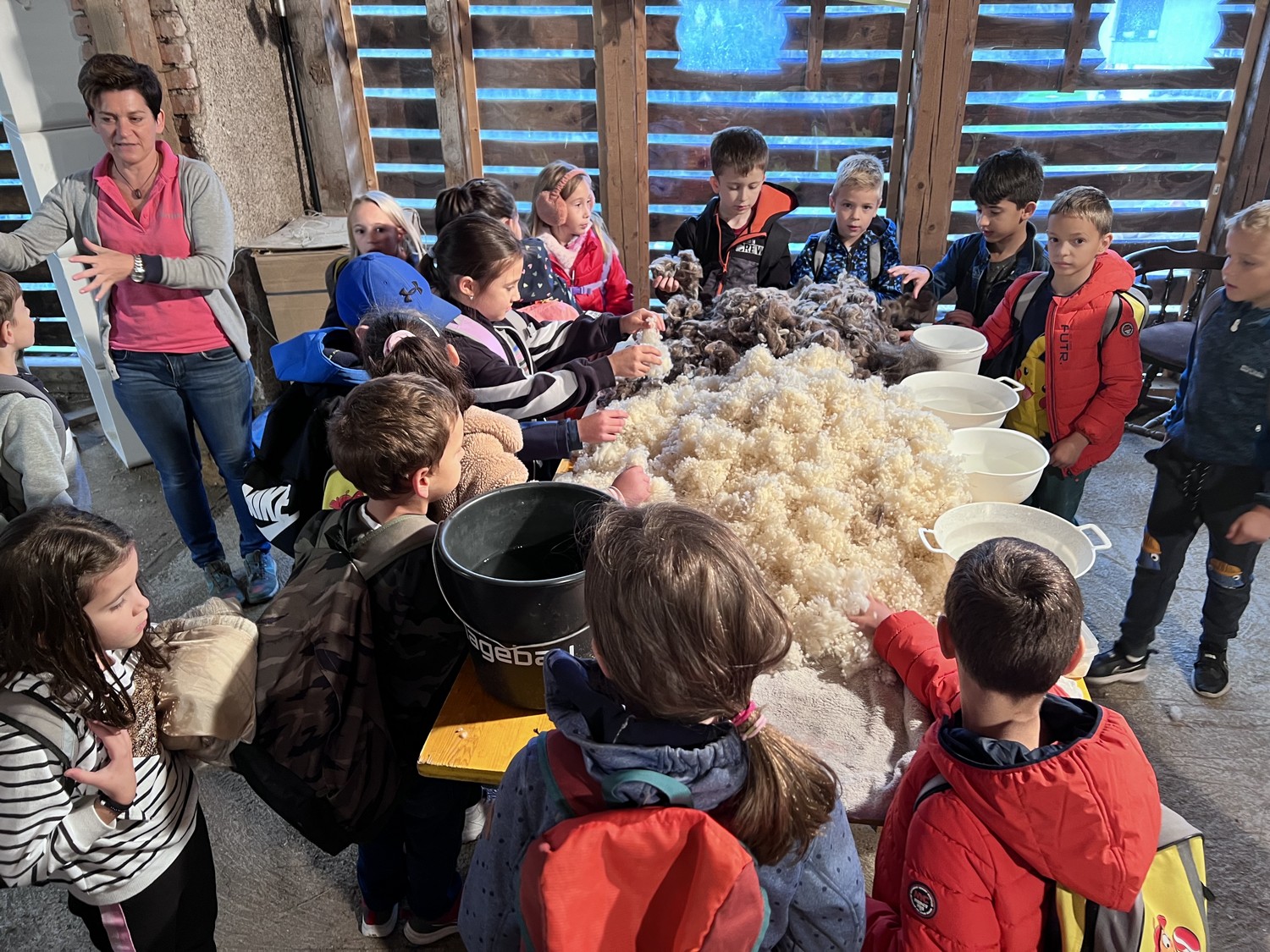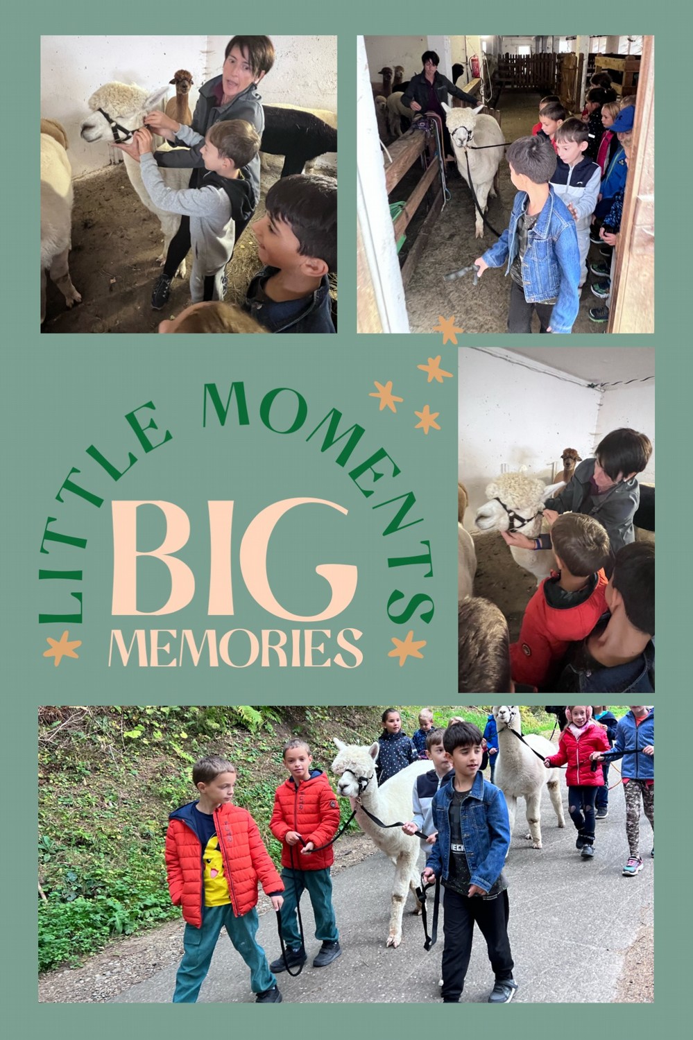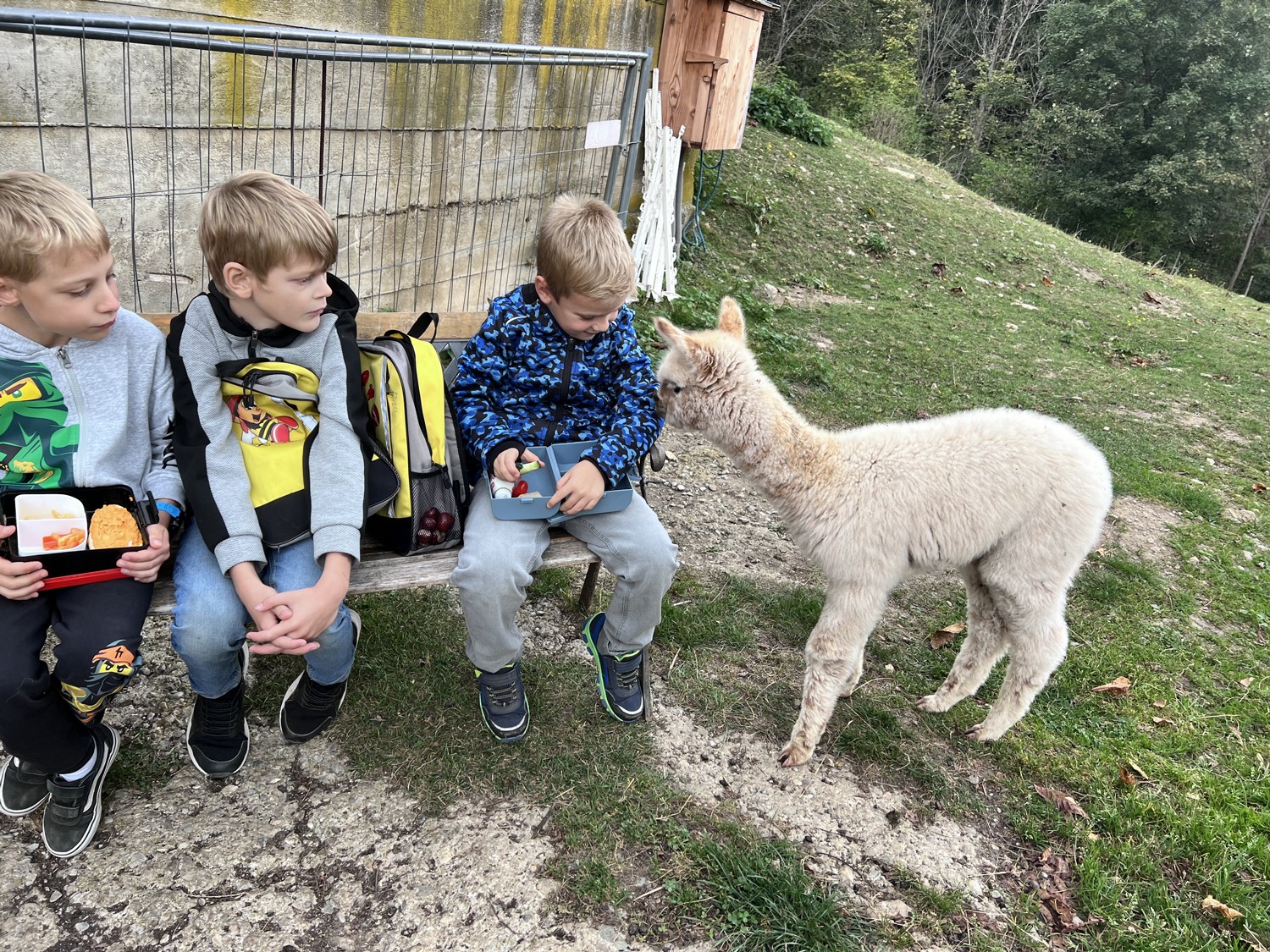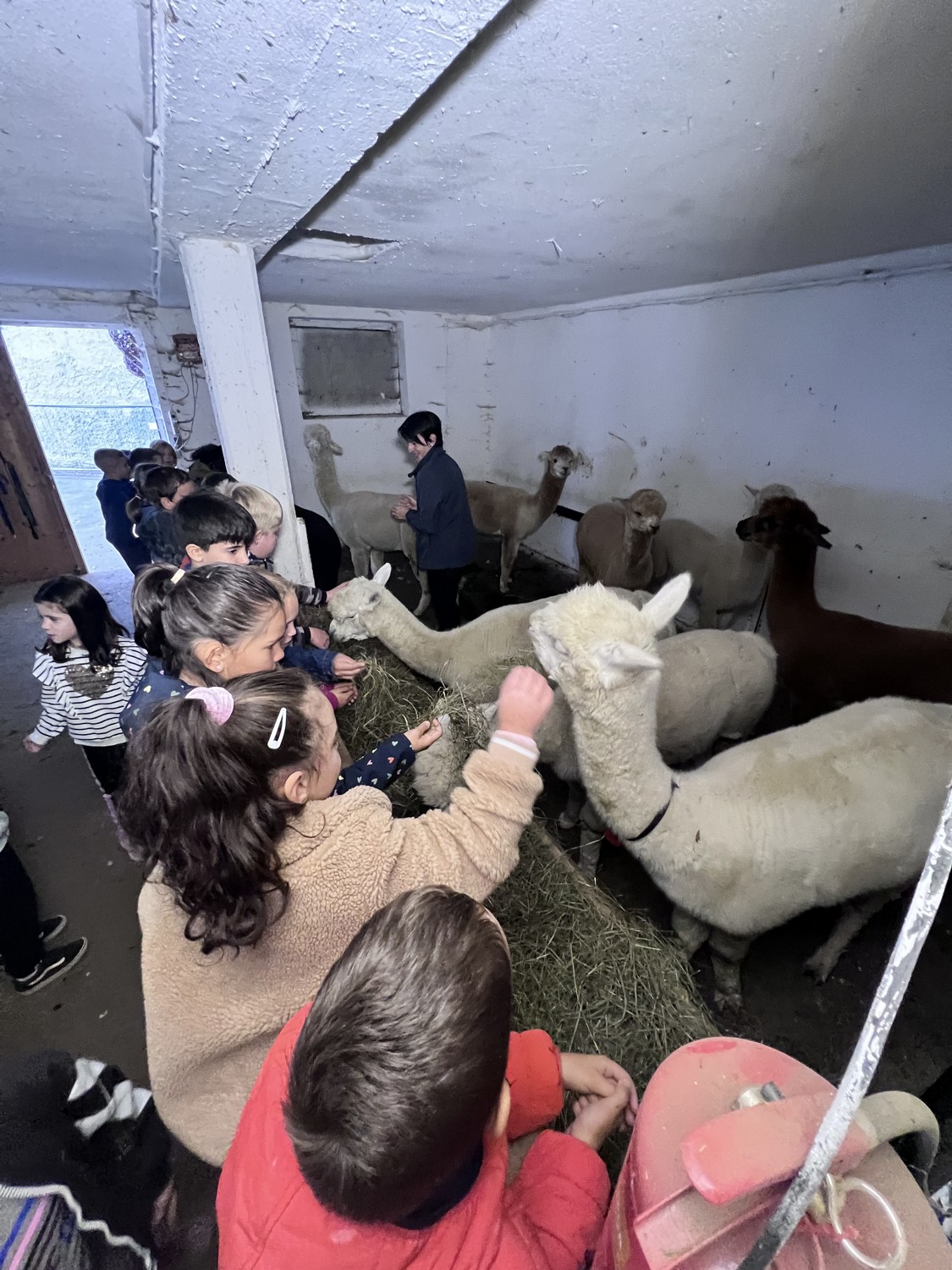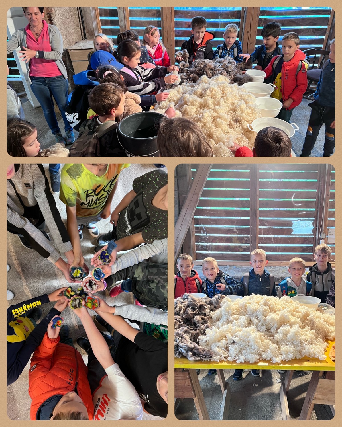 Die 2. Klassen besuchten die Alpakas am Wieserhof und durften viele neue Erlebnisse sammeln. Erst wurden die Alpakas gefüttert, danach für einen Spaziergang "aufgezäumt", spazieren geführt, gemeinsam gejausnet und zum Abschluss im Heu gehüpft und mit der Wolle der Alpakas Blüten gefilzt.