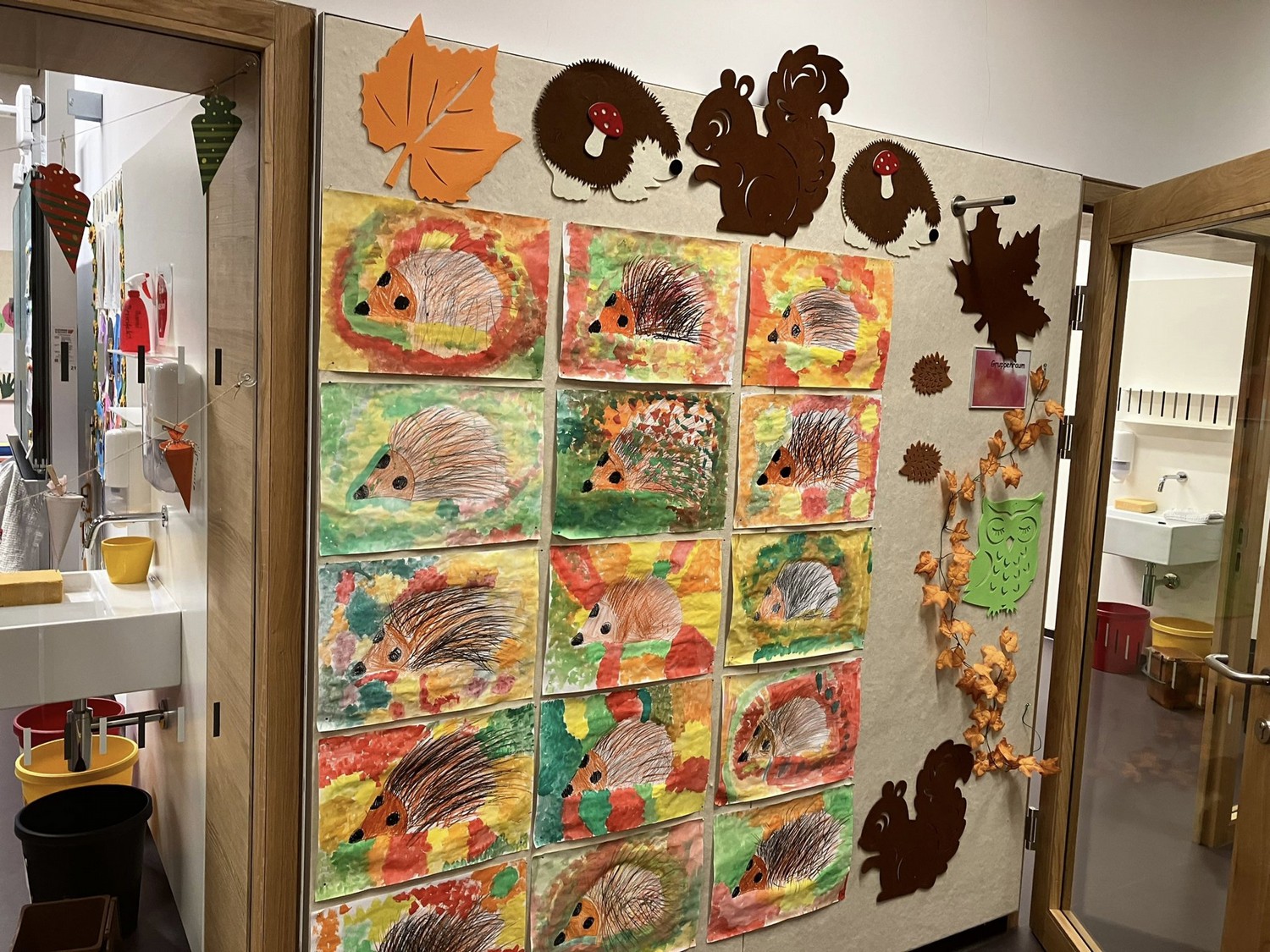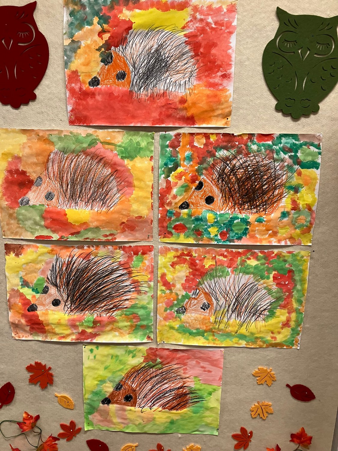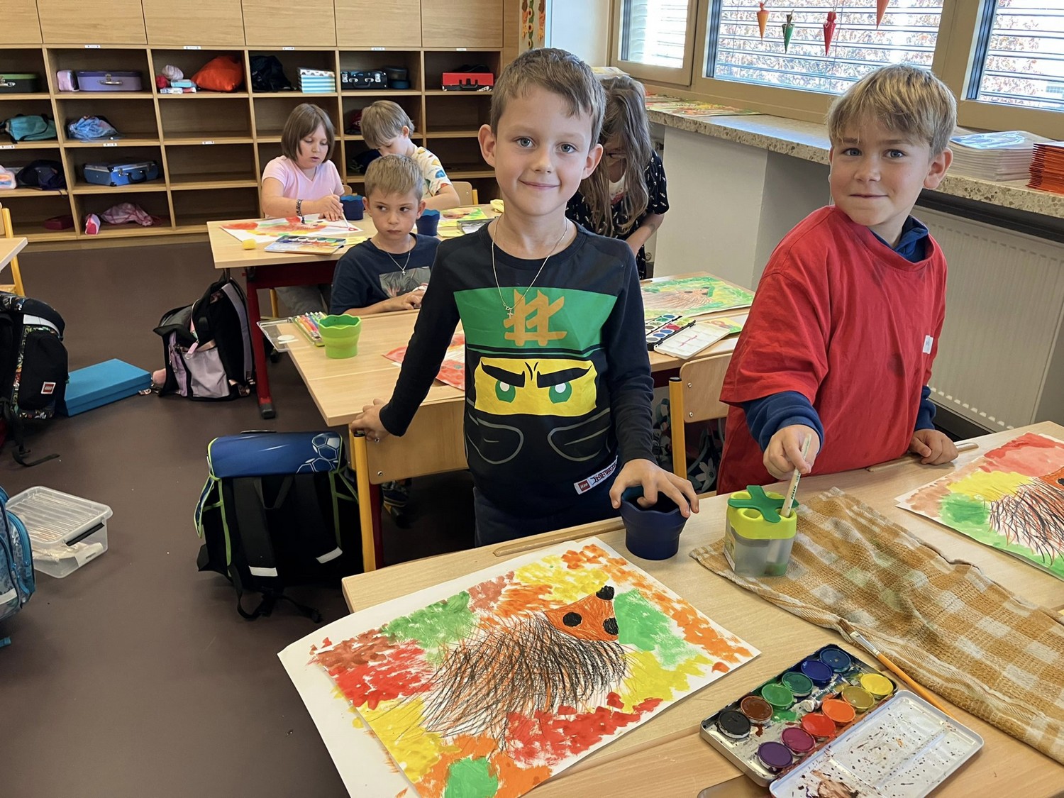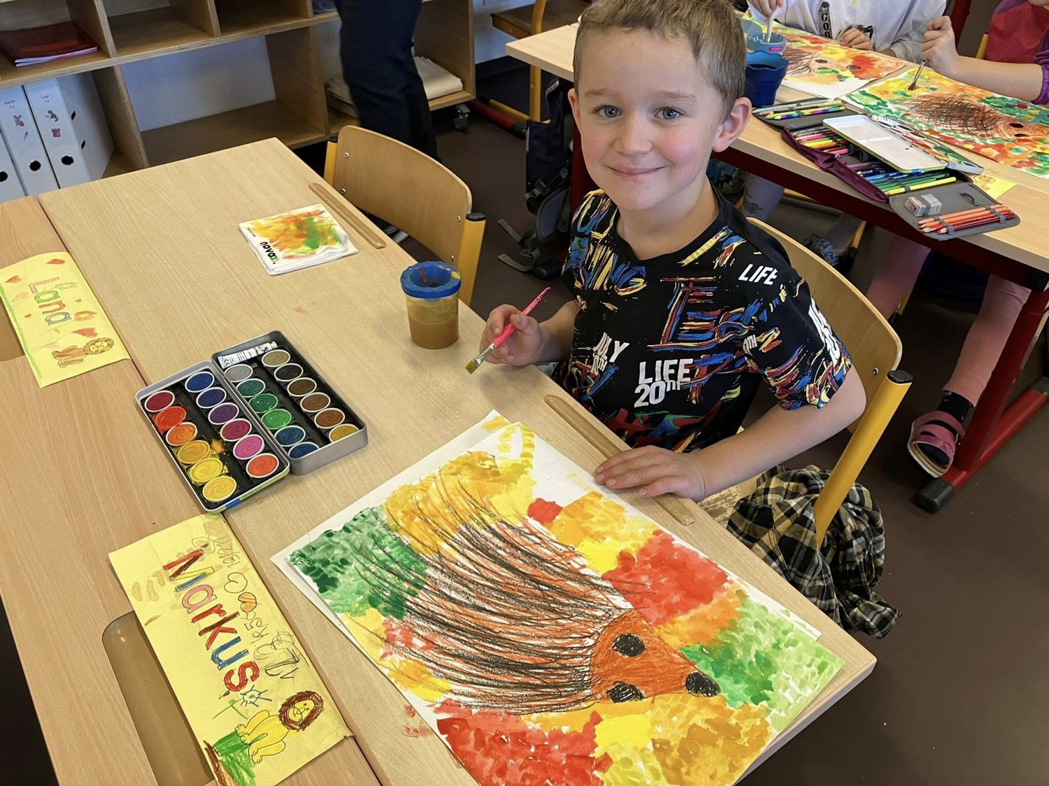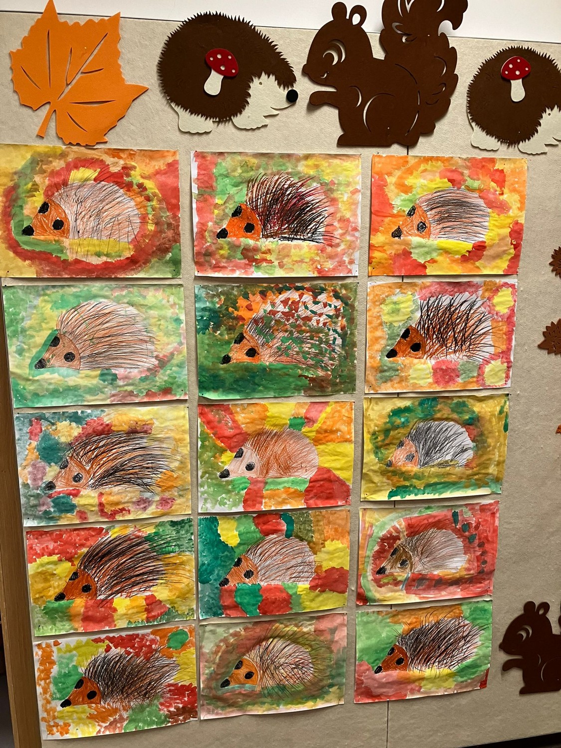 Mit großem Eifer waren die Kinder dabei, als sie mit Frau Steiner diese tollen Igelbilder gestalteten.