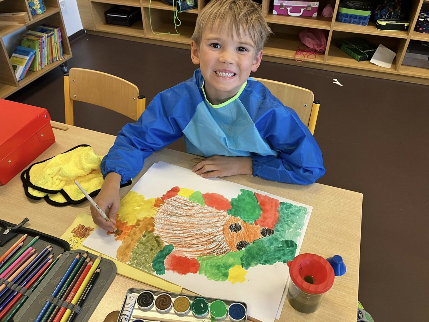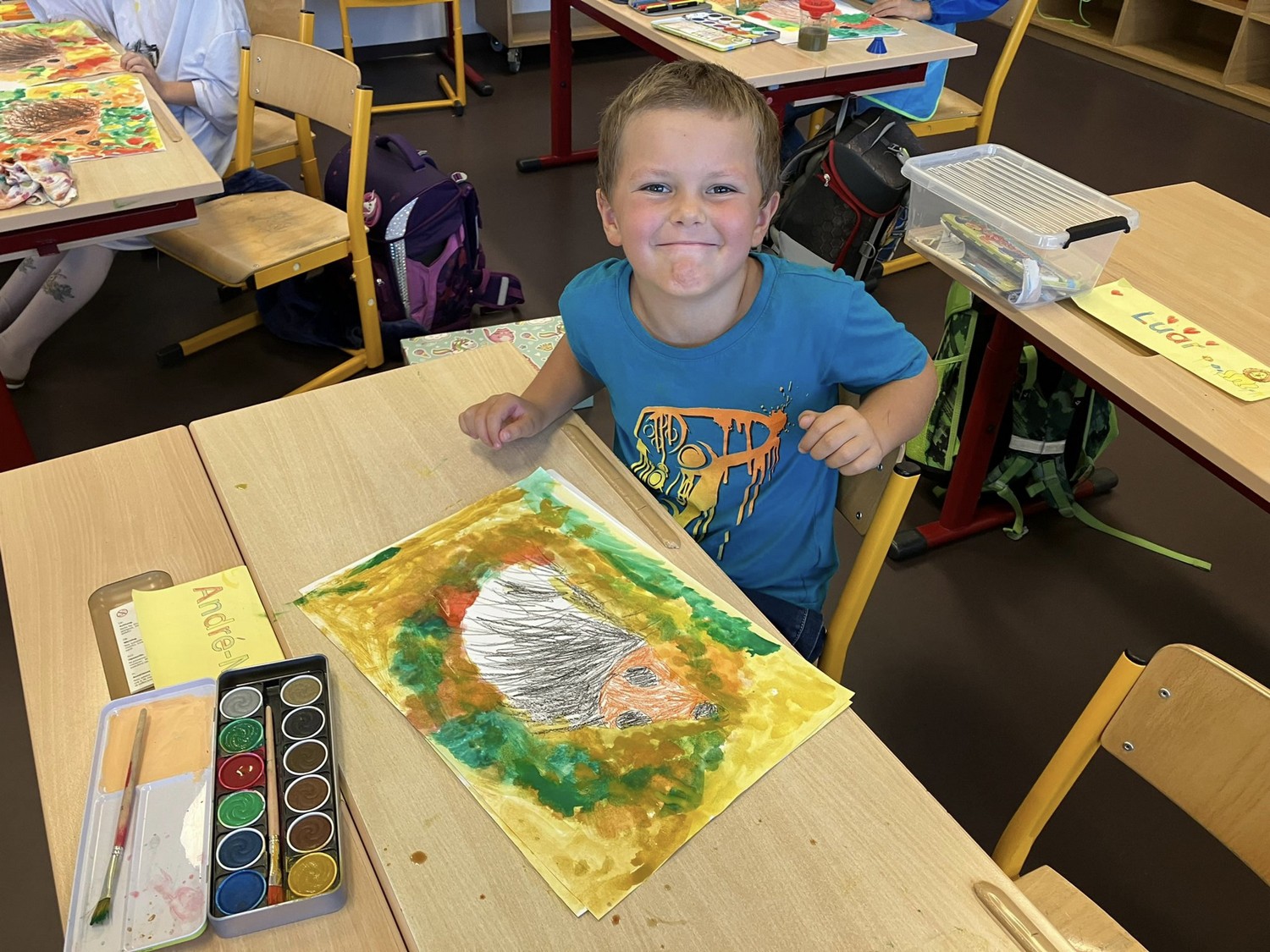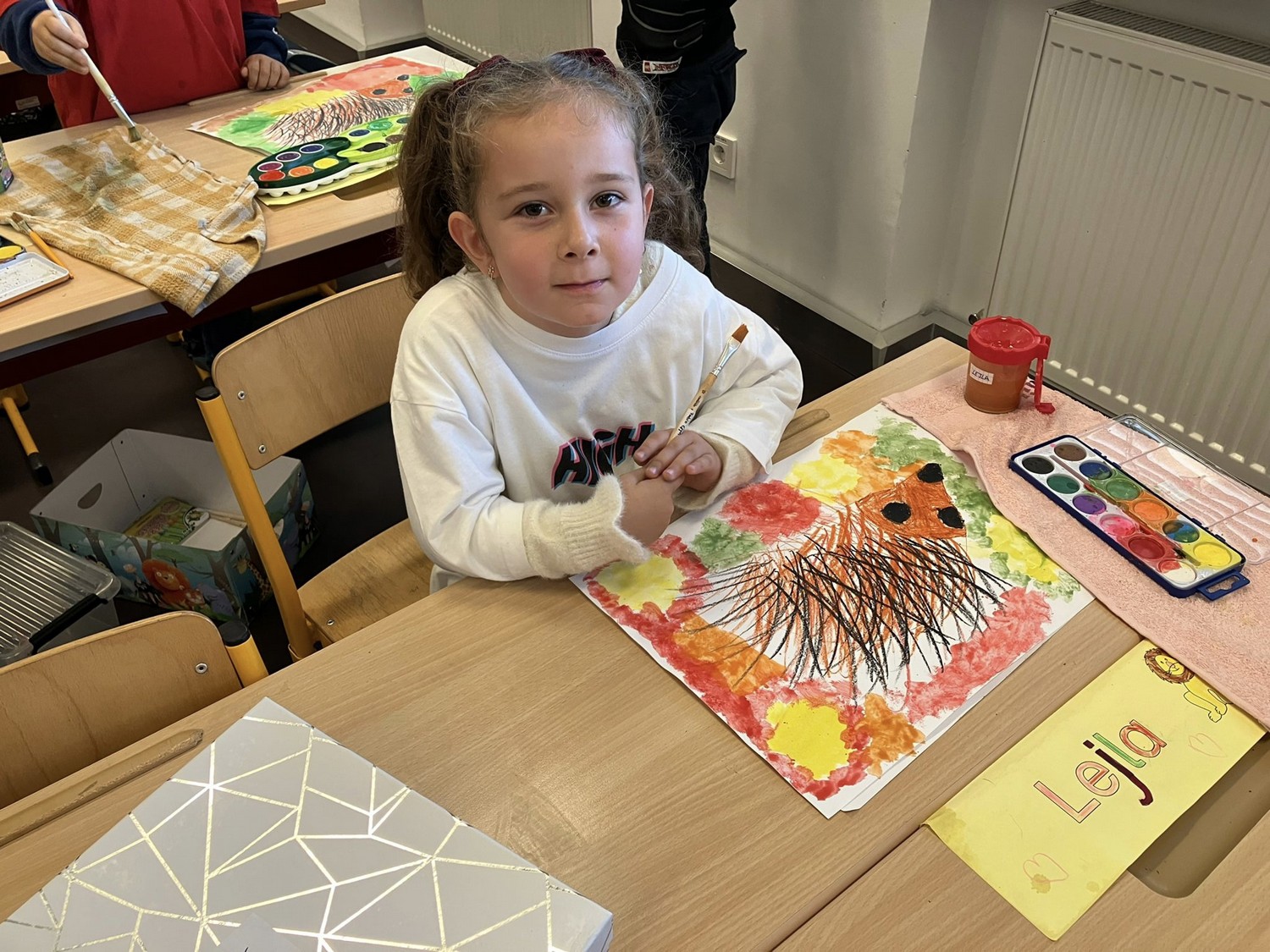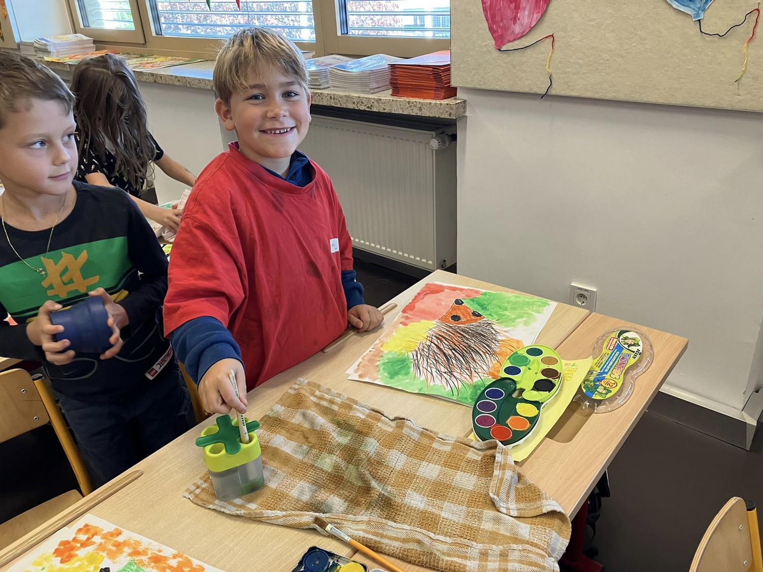 Mit großem Eifer waren die Kinder dabei, als sie mit Frau Steiner diese tollen Igelbilder gestalteten.