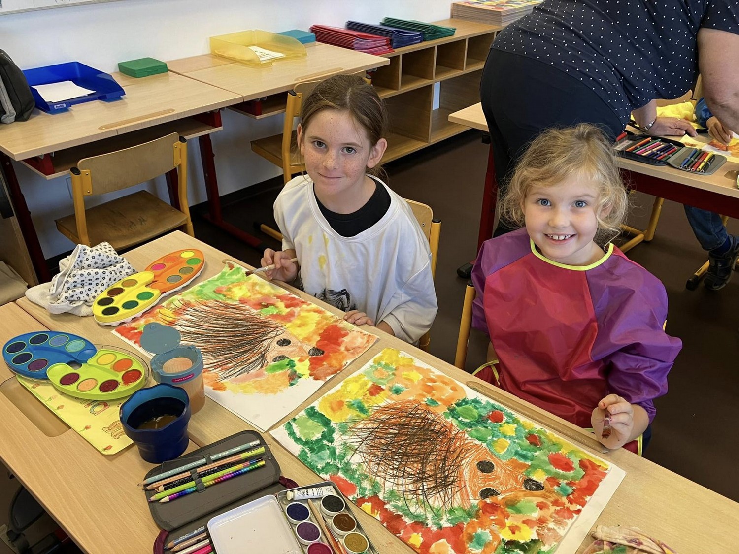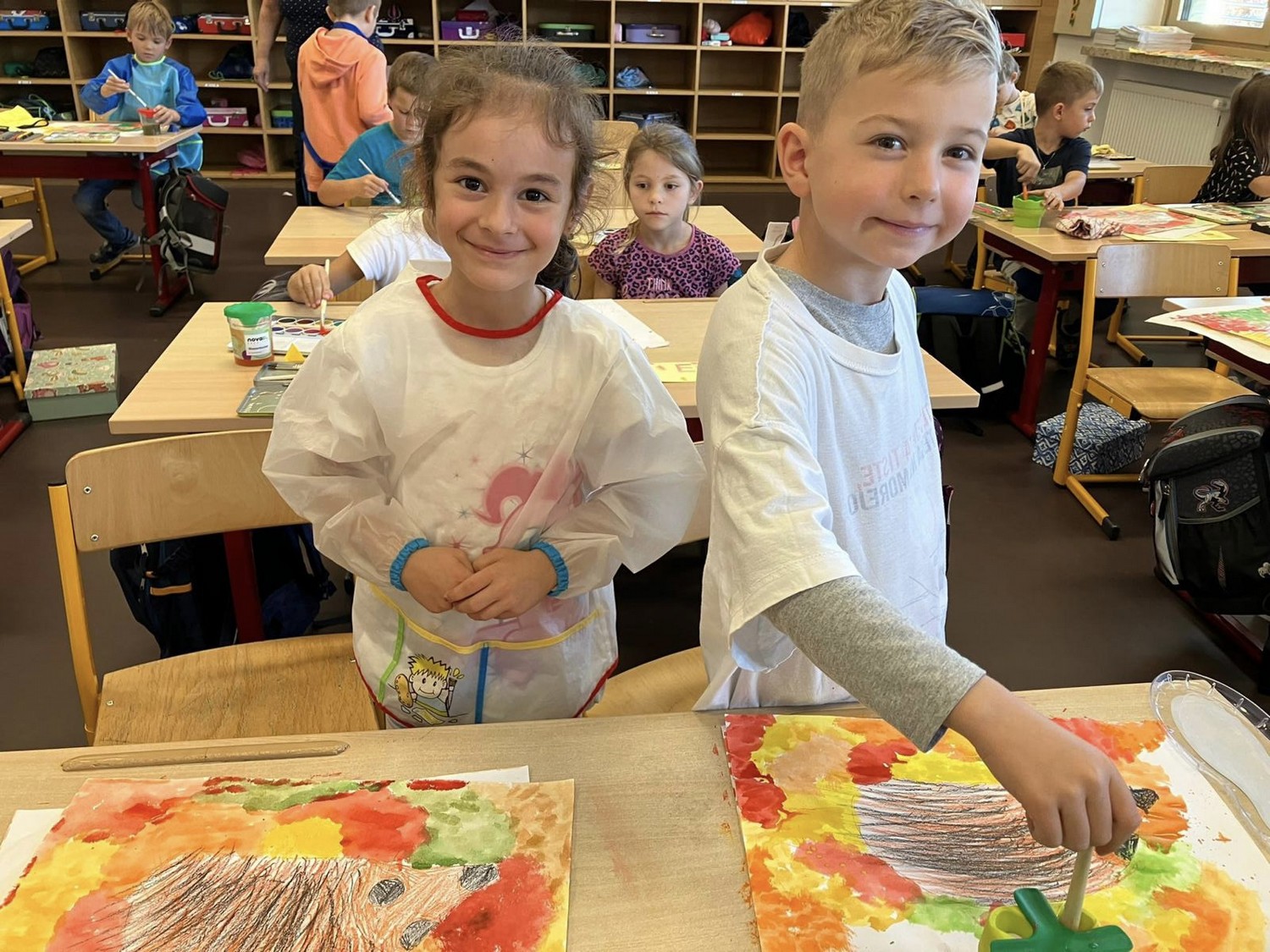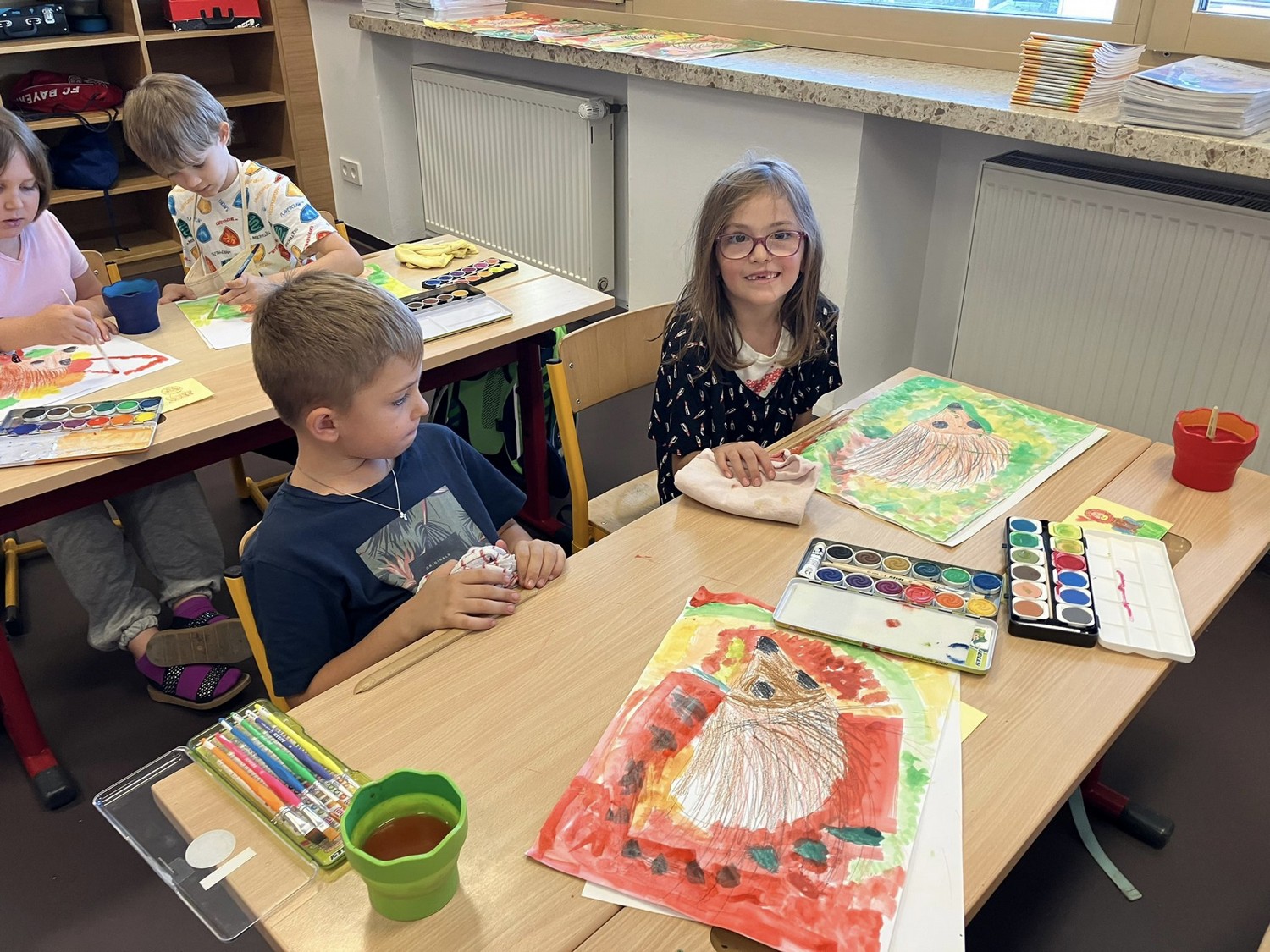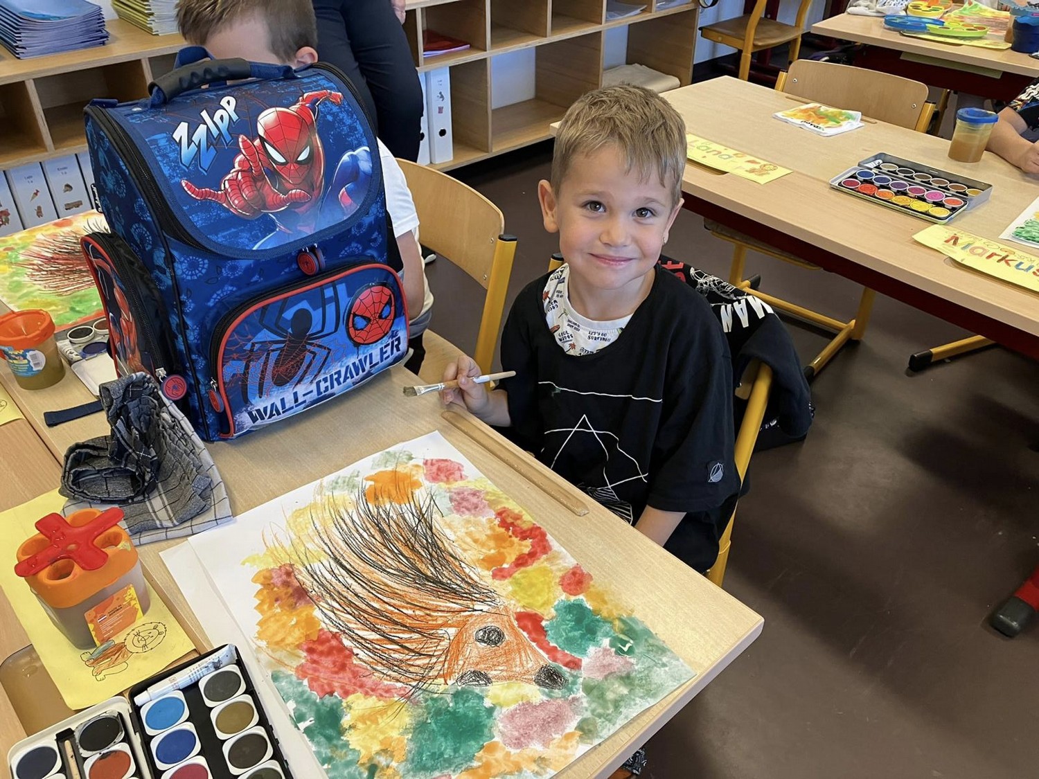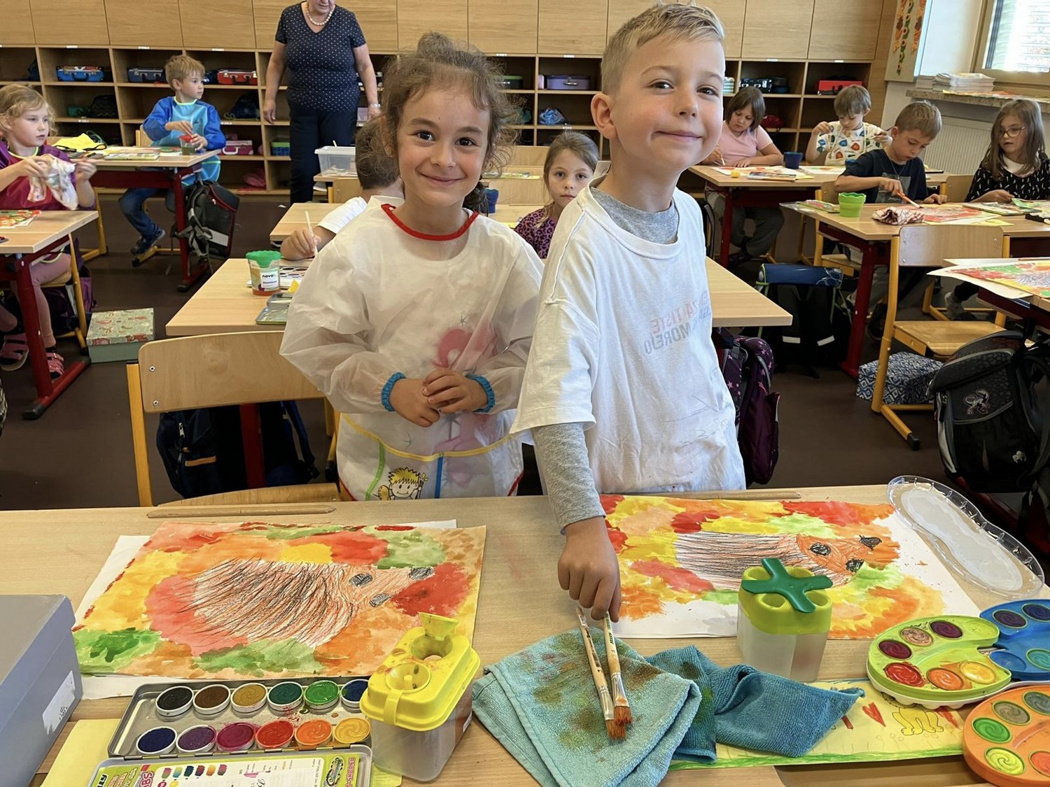 Mit großem Eifer waren die Kinder dabei, als sie mit Frau Steiner diese tollen Igelbilder gestalteten.