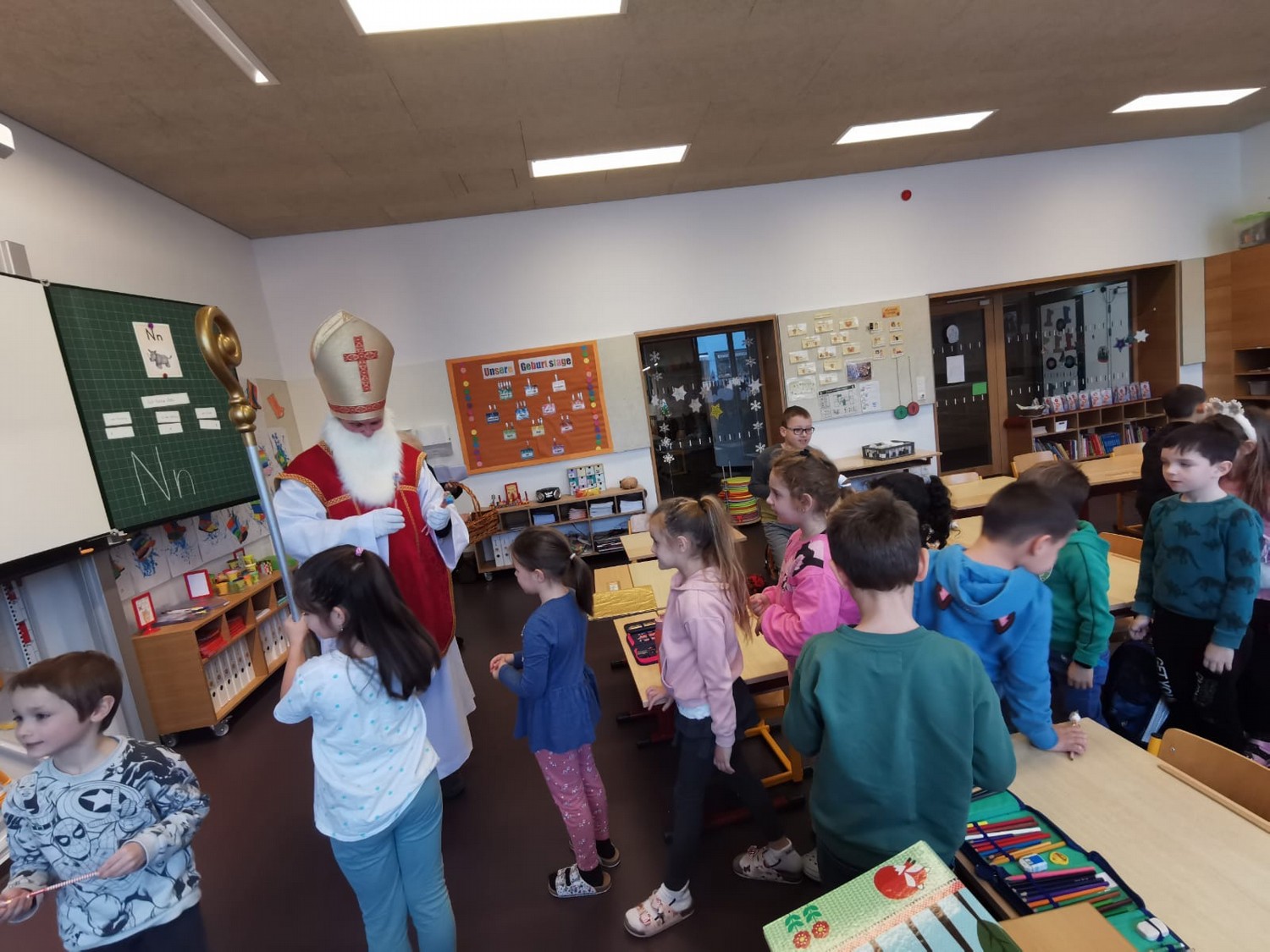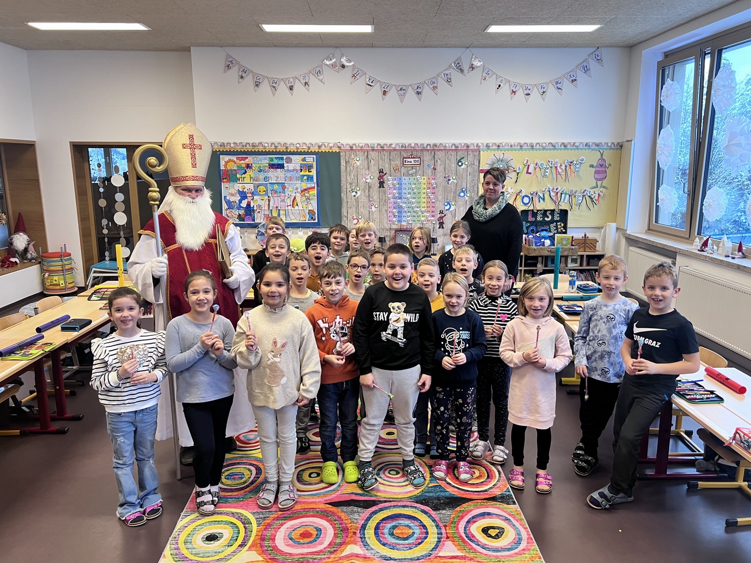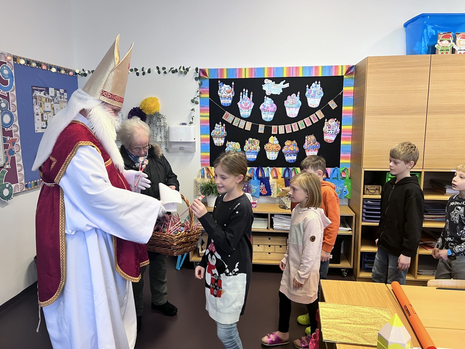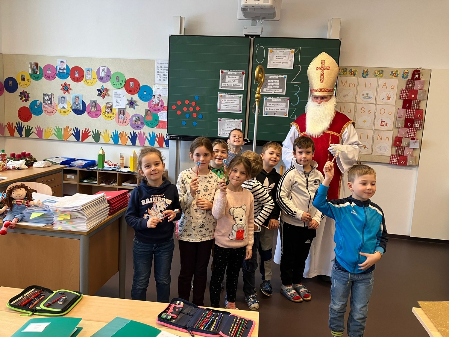 Am 6.12. kam der Nikolaus in jede Klasse zu Besuch. Nach einer kurzen Darbietung durften sich die Kinder einen weihnachtlichen Bleistift aussuchen.