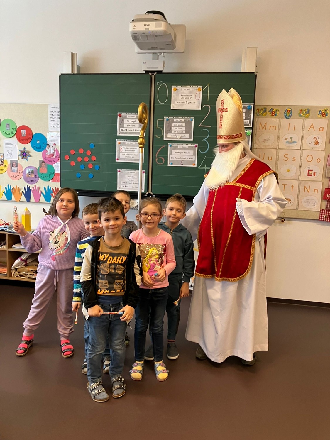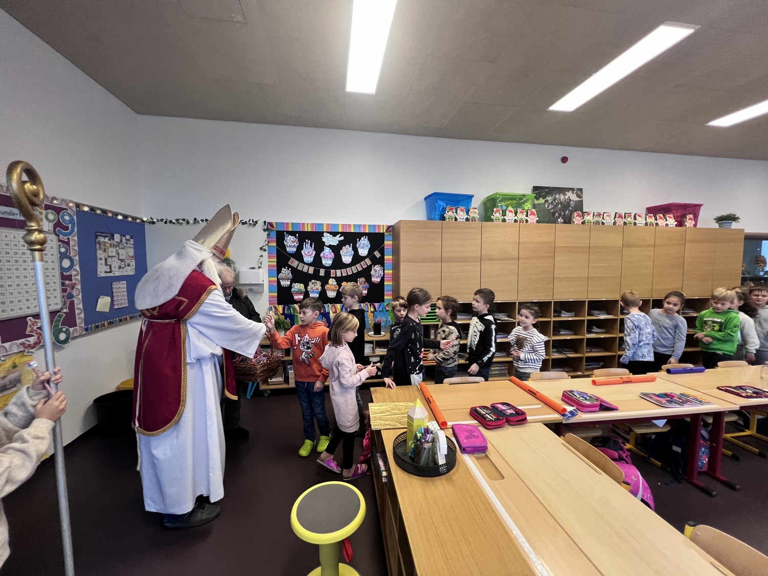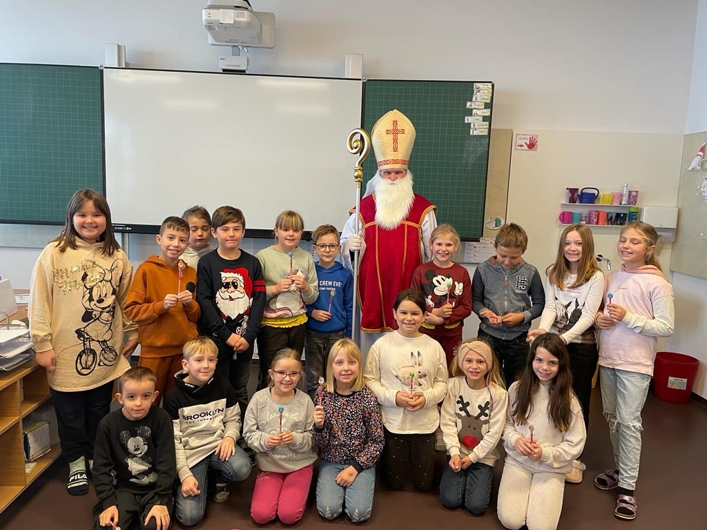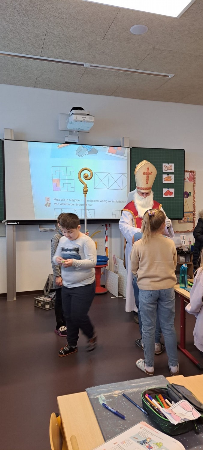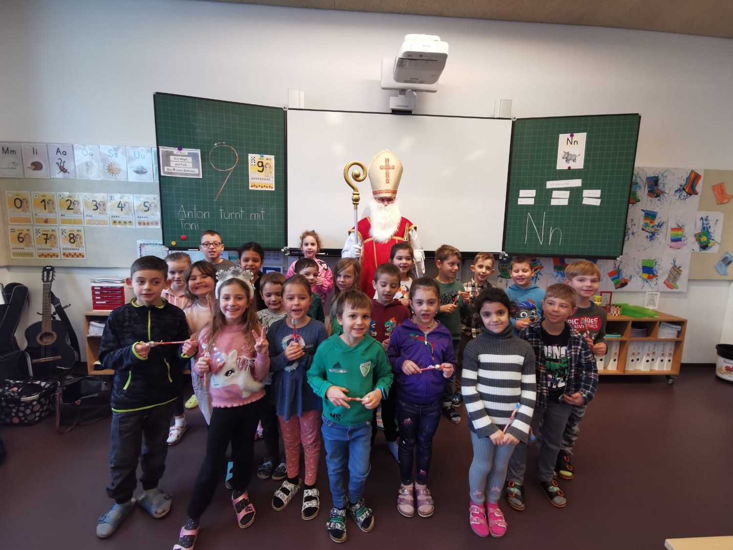 Am 6.12. kam der Nikolaus in jede Klasse zu Besuch. Nach einer kurzen Darbietung durften sich die Kinder einen weihnachtlichen Bleistift aussuchen.