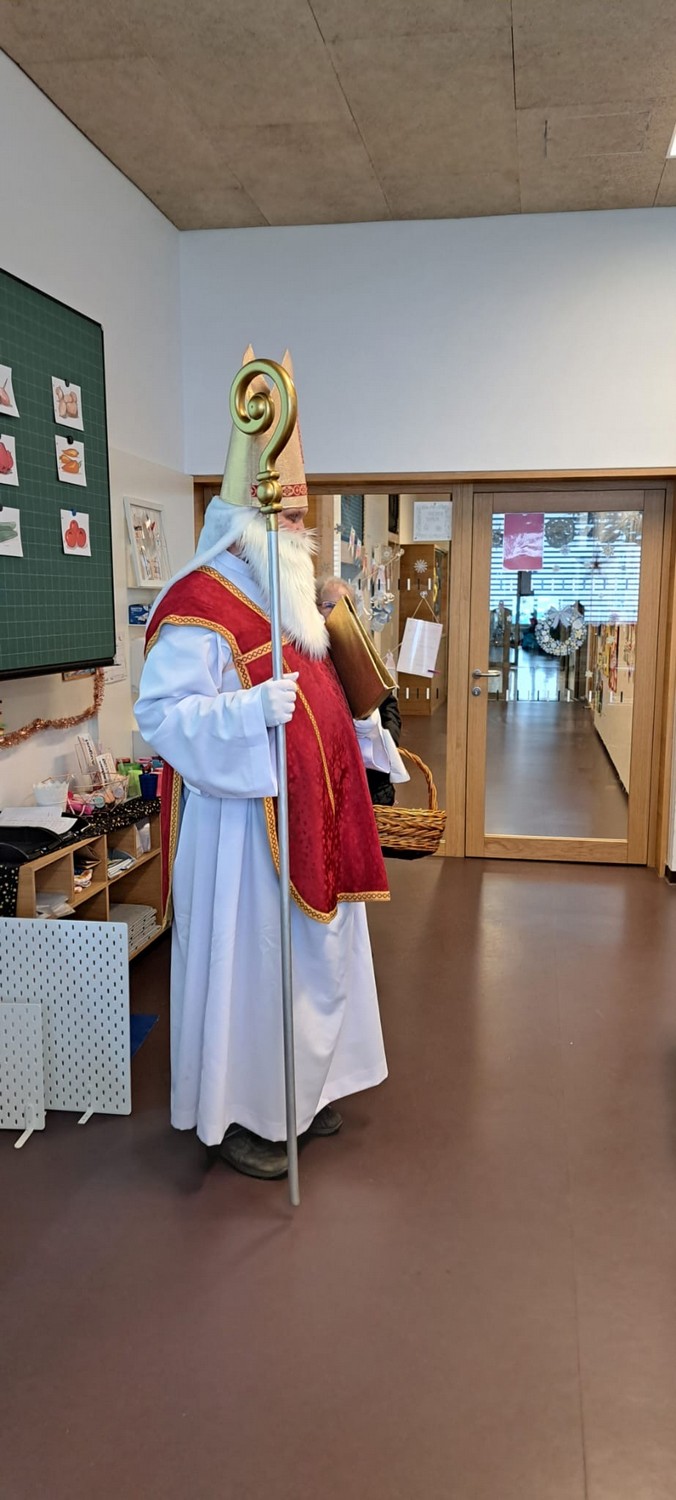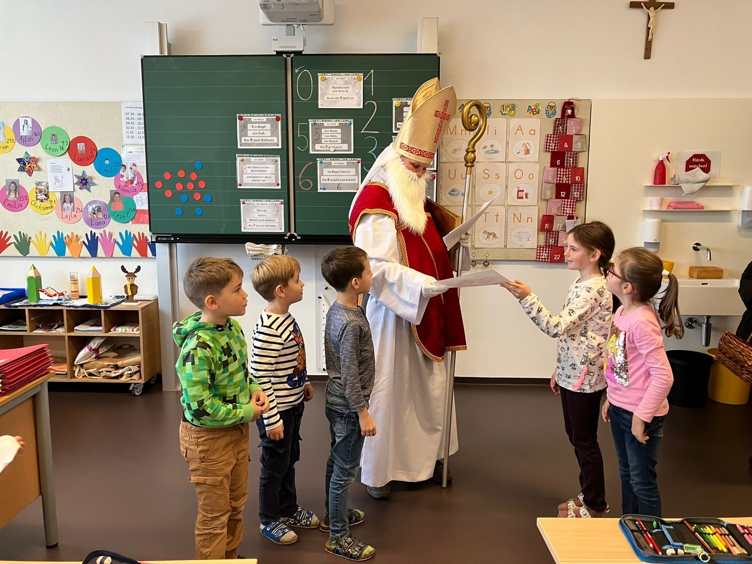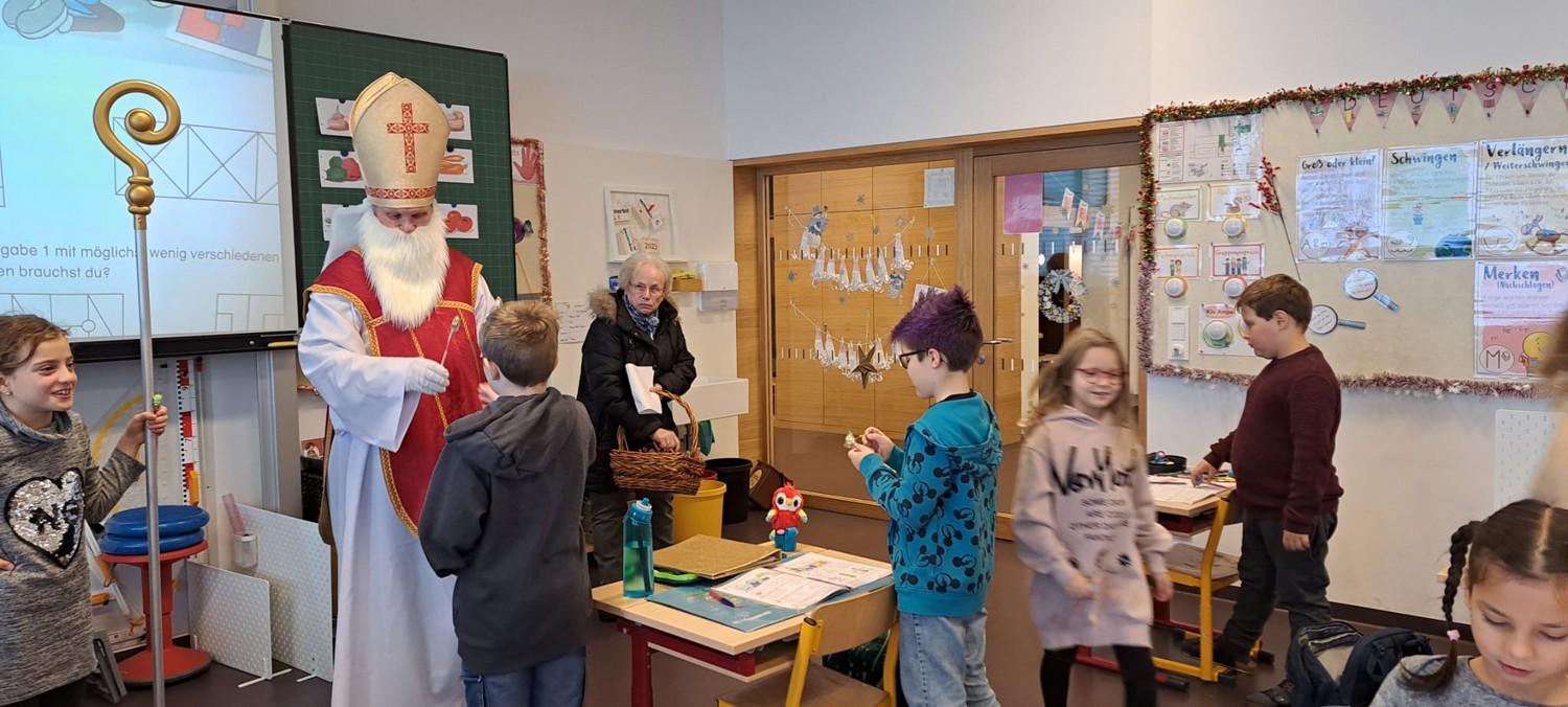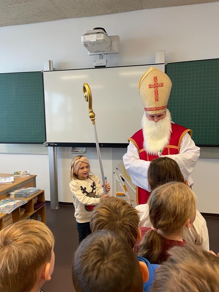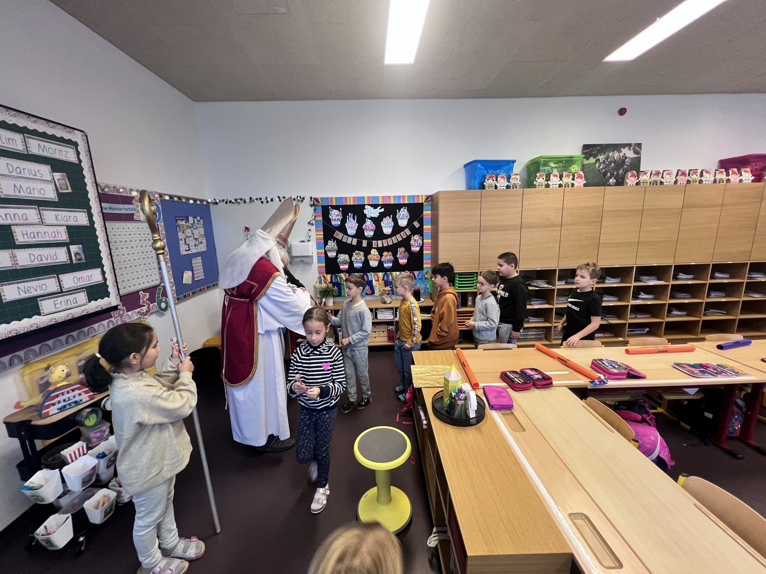 Am 6.12. kam der Nikolaus in jede Klasse zu Besuch. Nach einer kurzen Darbietung durften sich die Kinder einen weihnachtlichen Bleistift aussuchen.