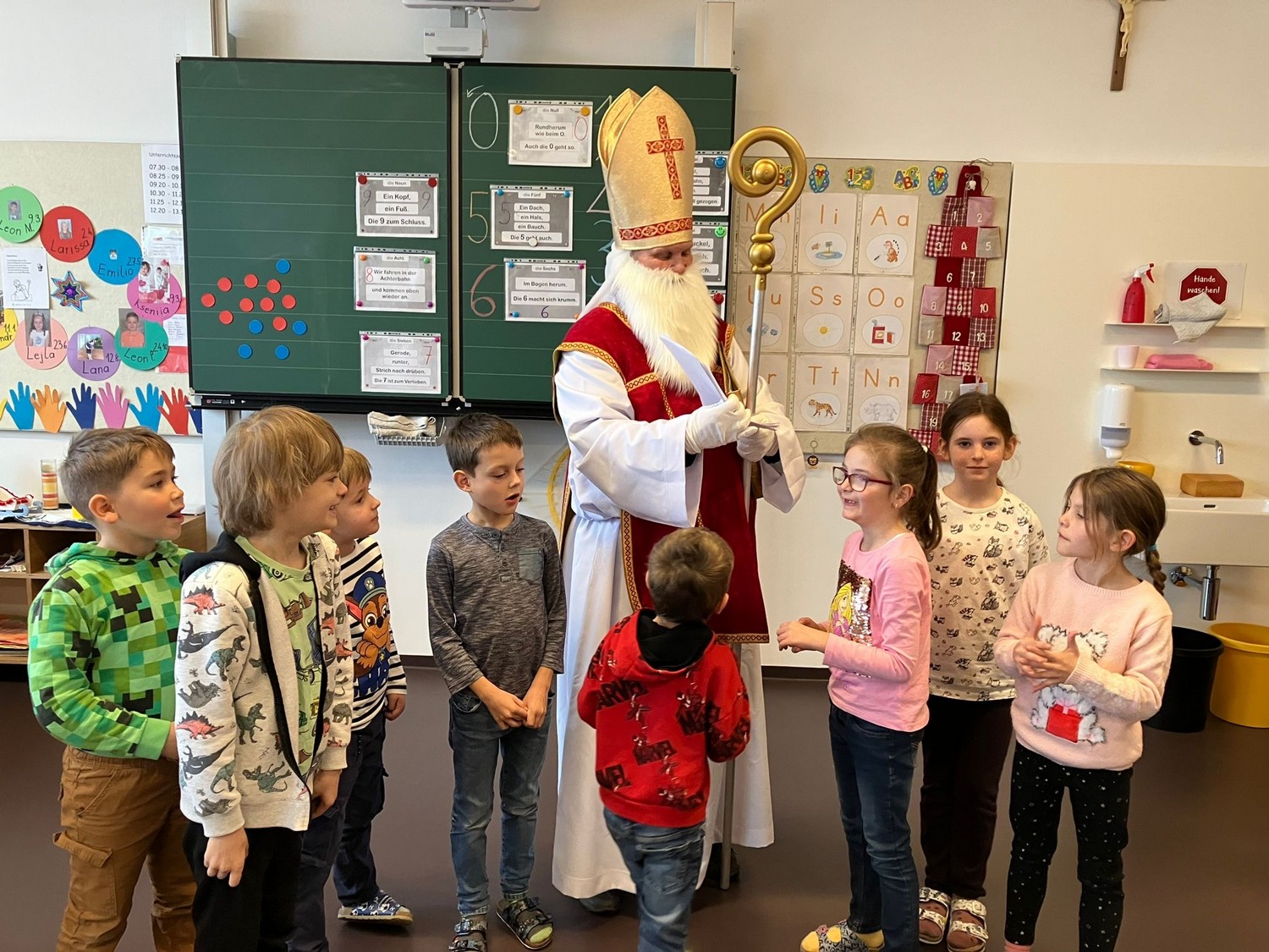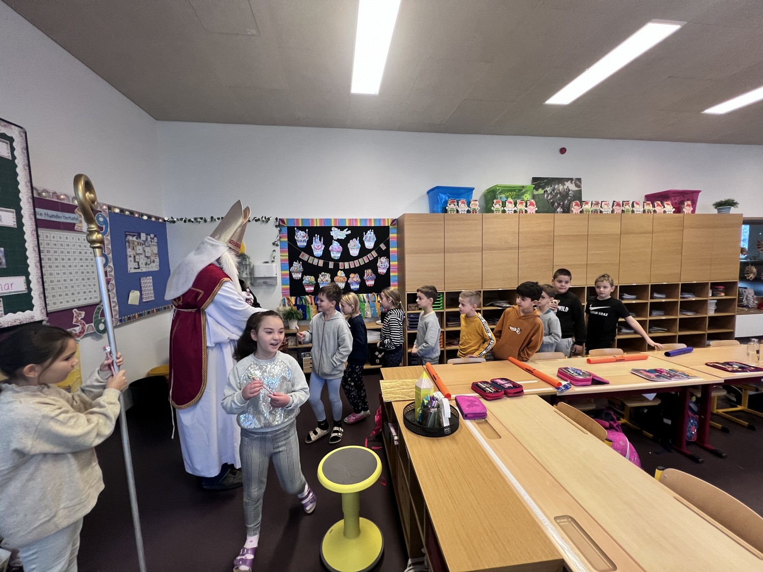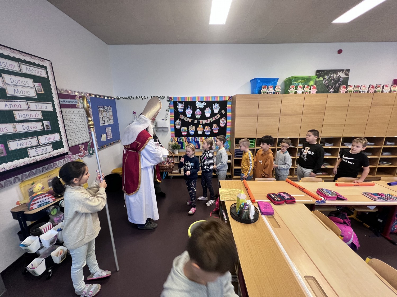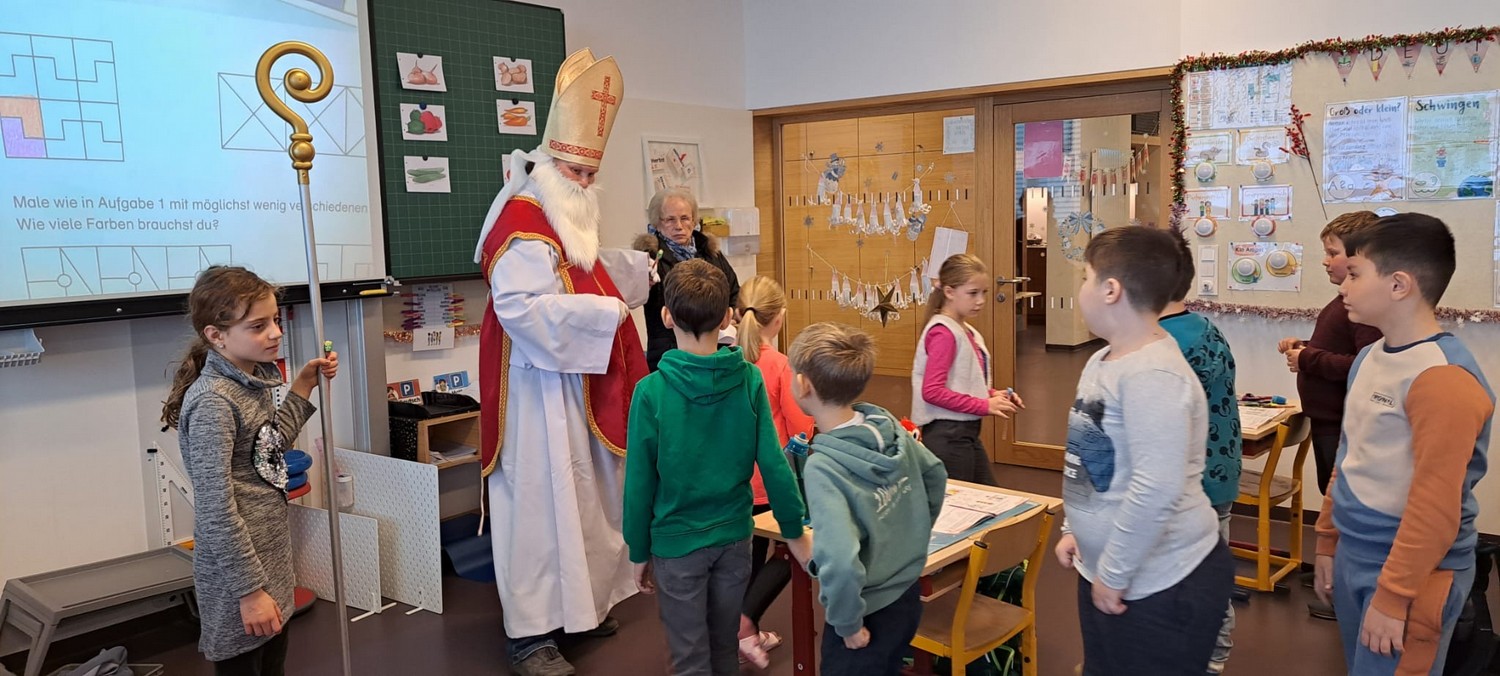 Am 6.12. kam der Nikolaus in jede Klasse zu Besuch. Nach einer kurzen Darbietung durften sich die Kinder einen weihnachtlichen Bleistift aussuchen.