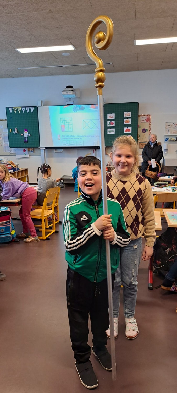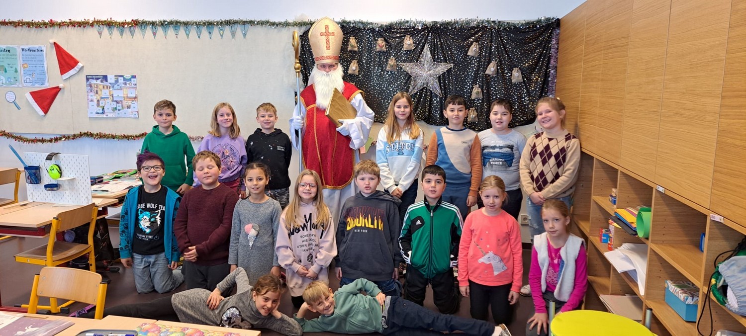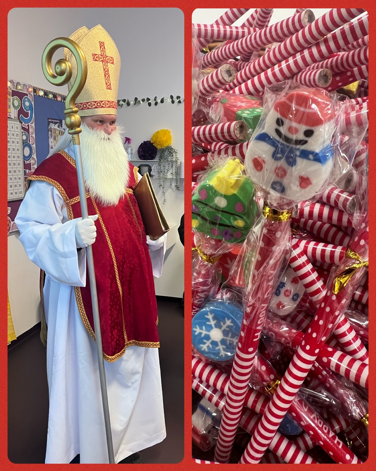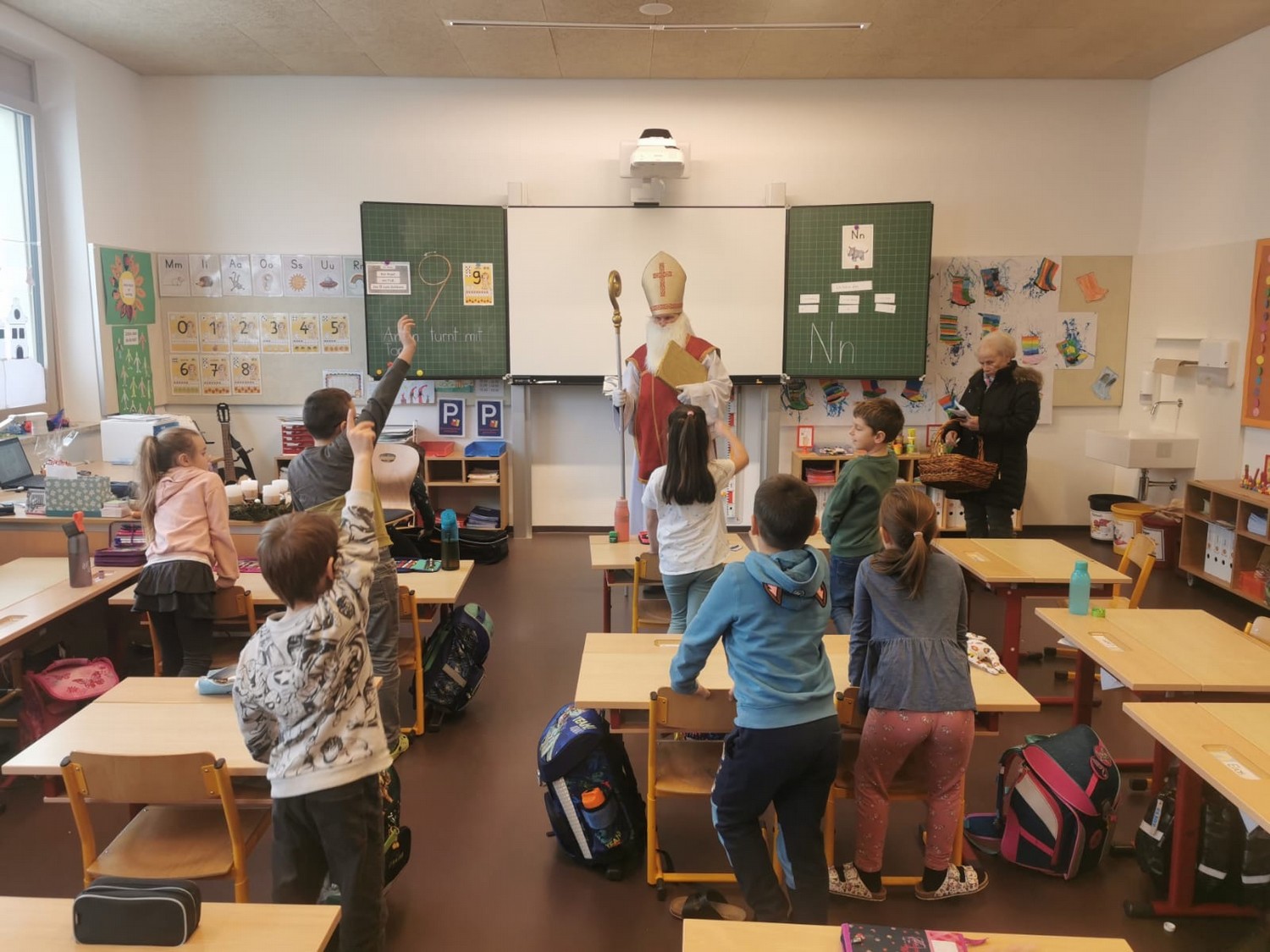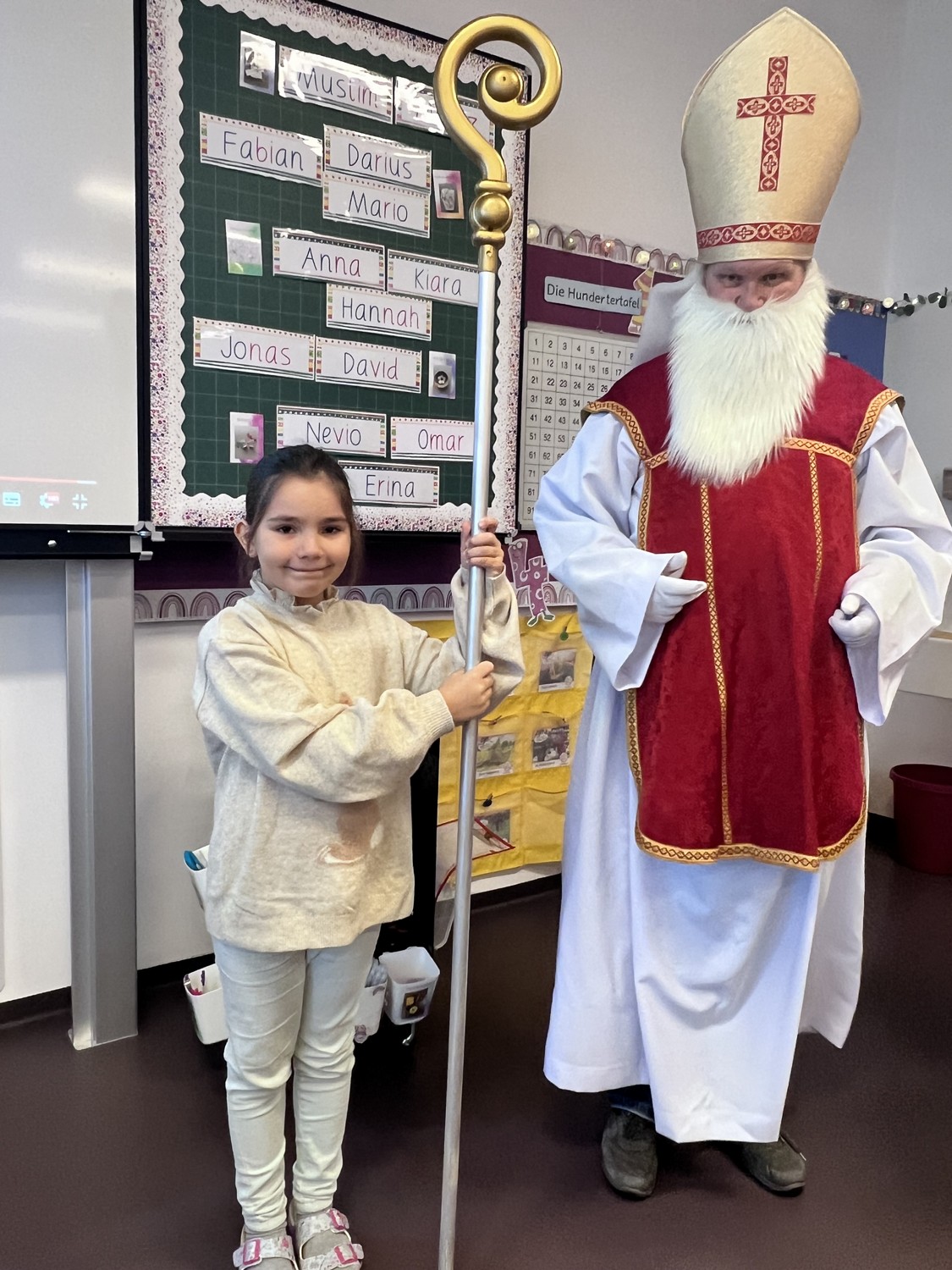Am 6.12. kam der Nikolaus in jede Klasse zu Besuch. Nach einer kurzen Darbietung durften sich die Kinder einen weihnachtlichen Bleistift aussuchen.