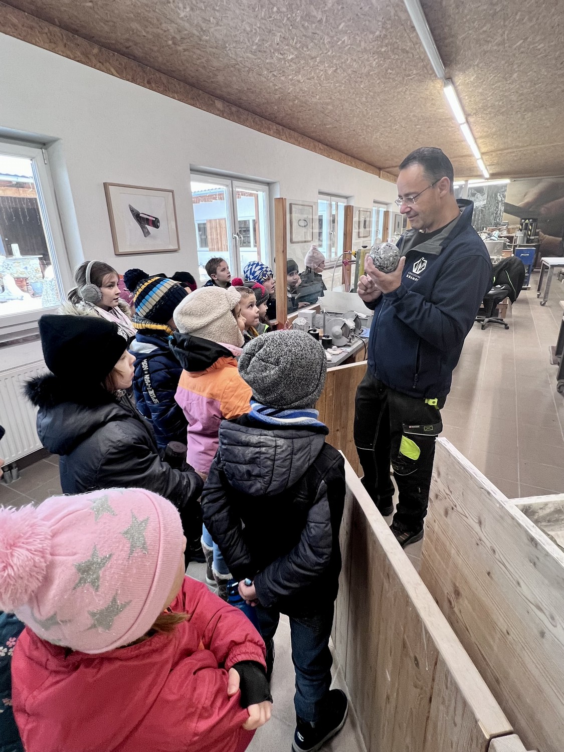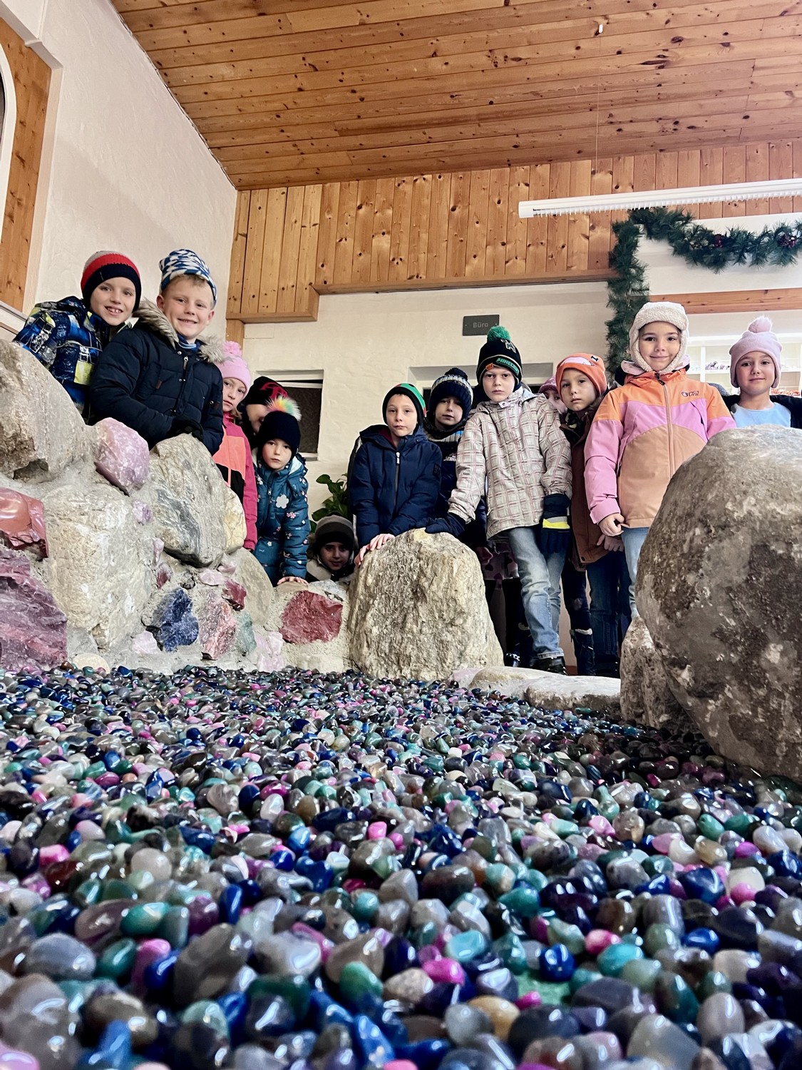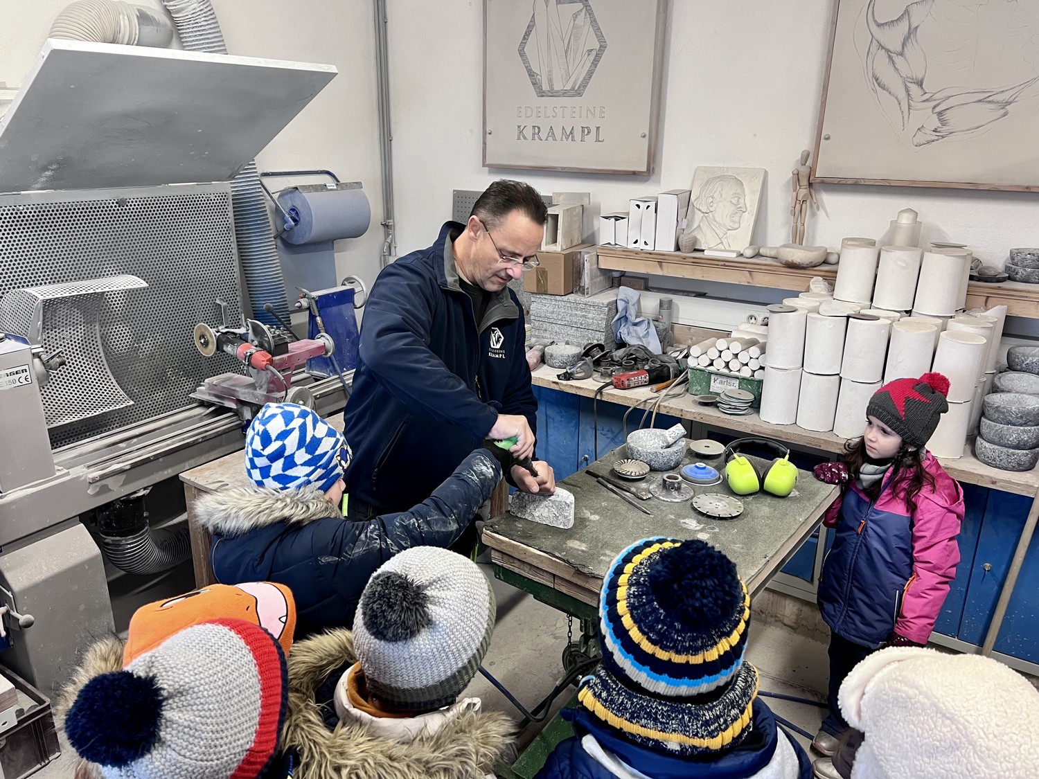 Einen wunderschönen Ausflug machten die beiden 2. Klassen am 13.12.23 und 14.12.23 in die Welt der edlen Steine nach Weißkirchen. Zunächst erfuhren die Kinder in der "Gläsernen Fabrik" wie Edelsteine geschliffen werden und erhielten Einblicke in die Arbeit eines Stein verarbeiteten Betriebes. Sie durften sogar selbst Hand anlegen.