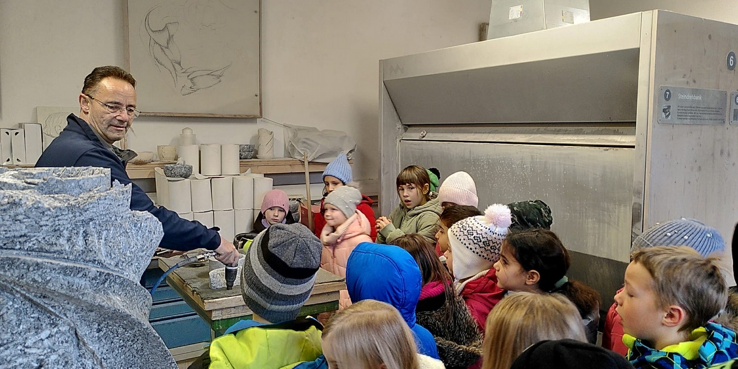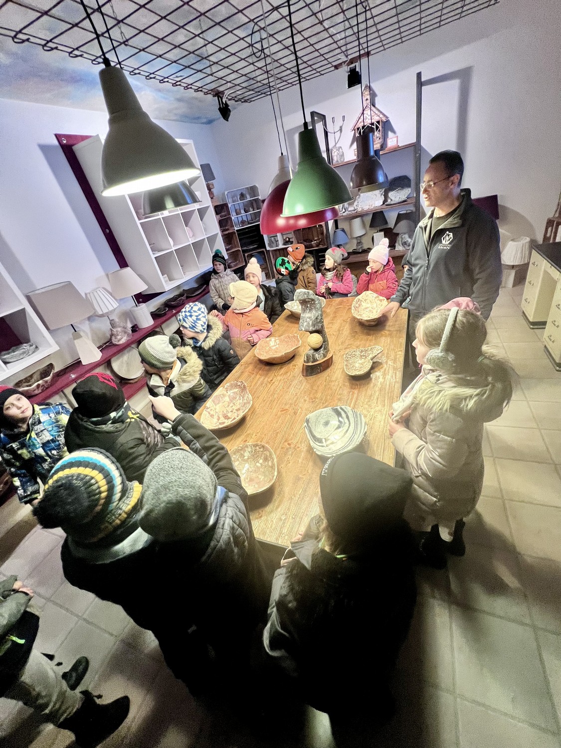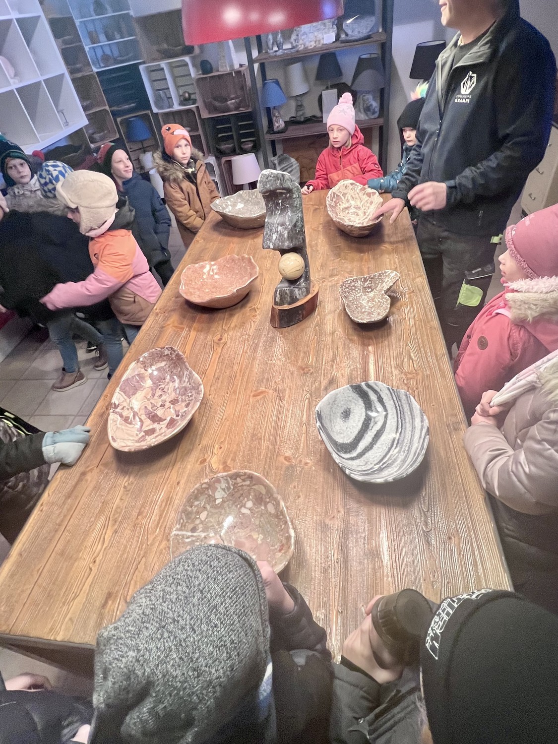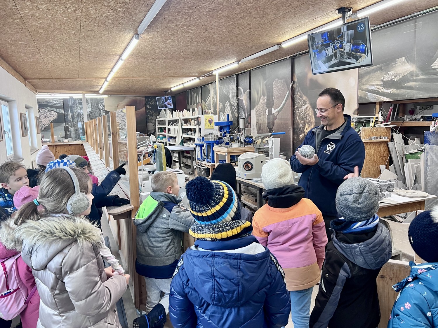 Einen wunderschönen Ausflug machten die beiden 2. Klassen am 13.12.23 und 14.12.23 in die Welt der edlen Steine nach Weißkirchen. Zunächst erfuhren die Kinder in der "Gläsernen Fabrik" wie Edelsteine geschliffen werden und erhielten Einblicke in die Arbeit eines Stein verarbeiteten Betriebes. Sie durften sogar selbst Hand anlegen.