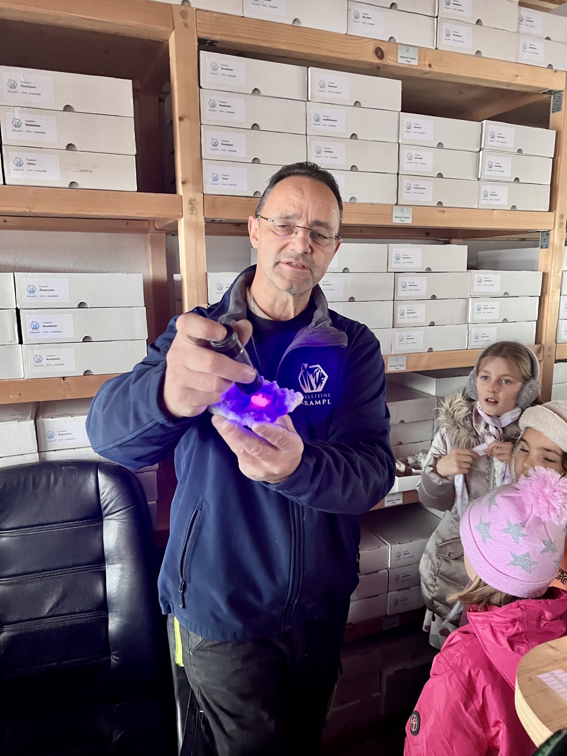 Besonders begeistert waren die Kinder von der großen Sammlung von Kristallen und Mineralien aus aller Welt, die sie in der "Glitzerwelt" bestaunen konnten.