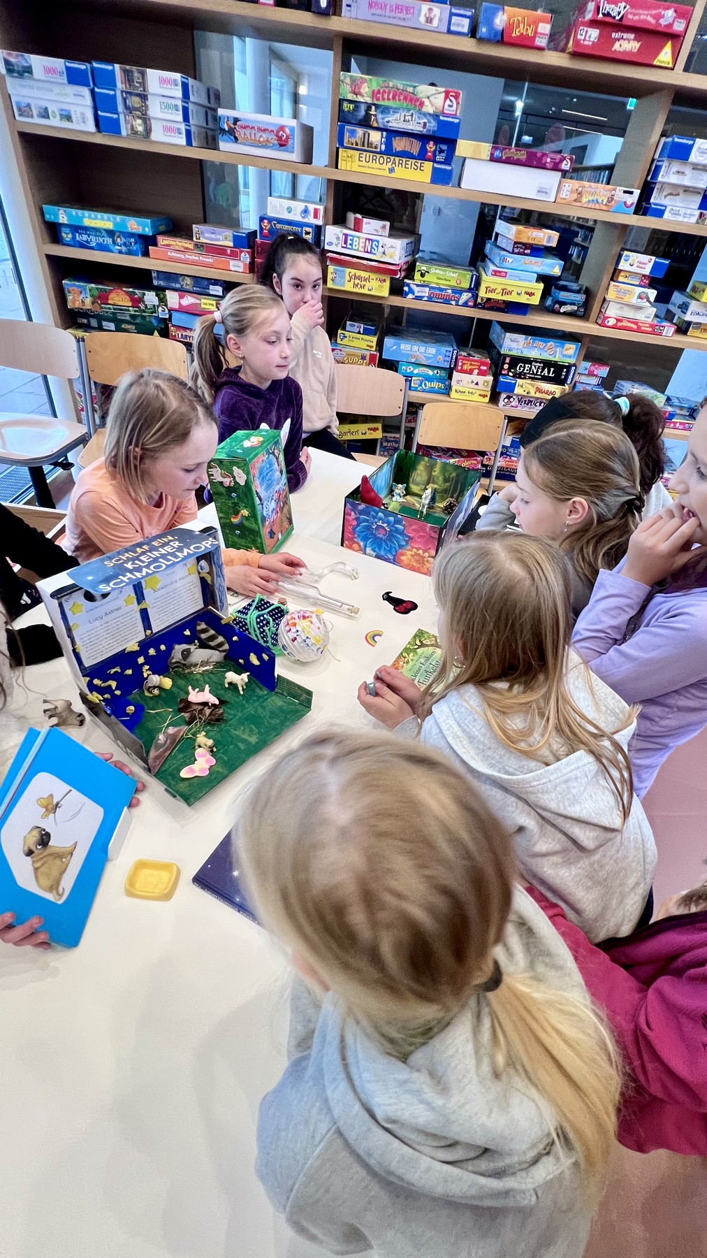 Die zweiten Klassen präsentierten sehr stolz ihre tollen Leseschachteln zu ihren Lieblingsbüchern.